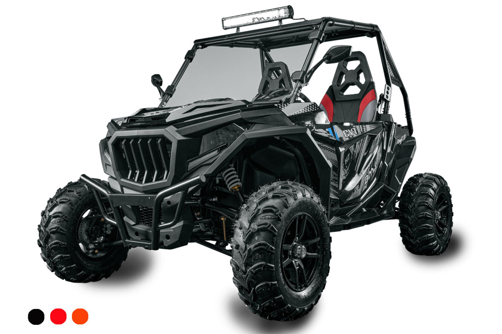 Багги BMS H7 - это новый взгляд на заднеприводные багги. Максимальный комфорт обеспечивает современная подвеска в стиле BRP, закрытый кузов, максимально удобный и функциональный салон.Эта модель сходу залетает в сердце всем представительницам прекрасной половины человечества. Закрытый корпус усиливает ощущение безопасности и защищенности. Плавные линии привычны после городского авто. А камера заднего вида как вишенка на торте!Эта багги отлично подойдет для прогулок по лесным дорогам и по просторам полей. На каменистых участках не отдает в спину и позволяет наслаждаться видами вокруг. Глубоких бродов так же не боится. Но грязь и горы - это не ее стихия. Равная колея переда и зада не позволяют Н7 преодолевать грязные и заболоченные участки. В горах же всему виной большой вес Н7.Багги BMS H7 имеет богатую базовую комплектацию:- Полноценный, качественный свет в совокупности с дополнительной световой балкой на крыше.