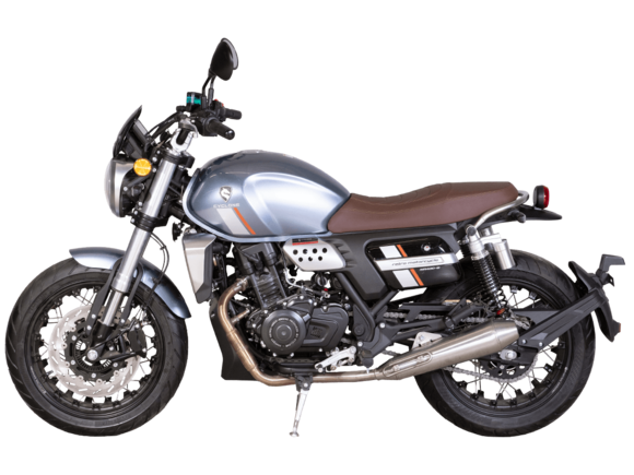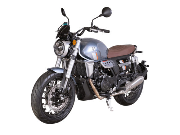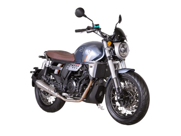 CYCLONE RE5 (SR600) – классик, в котором брутальная простота объединяется с современными технологиями. Данная модель является самой крупнокубатурной среди классических мотоциклов компании CYCLONE.Двухцилиндровый четырёхтактный двигатель объёмом 550 см3 выдаёт 60 л.с. на 8500 об/мин. Максимальный крутящий момент достигается на 6500 об/мин и составляет 55 Н·м. Инжекторный впрыск топлива с блоком управления BOSCH увеличивает топливную экономичность, а также позволяет добиться высокой приёмистости и неприхотливости агрегата. Жидкостная система охлаждения не допустит перегрева двигателя даже при самом агрессивном вождении. На мотоцикл установлена 6-ступенчатая механическая коробка передач.Максимальная скорость мотоцикла составляет 170 км/ч.RE5 оснащён классическими спицевыми колёсами диаметром 17 дюймов. Колёса обуты в бескамерные покрышки от легендарной фирмы PIRELLI. С неровностями дороги эффективно справляются телескопическая вилка перевёрнутого типа спереди и маятник с моноамортизатором сзади. Ход передней подвески составляет 120 мм, задней – 50 мм. Оба компонента подвески являются регулируемыми. Эффективное и безопасное замедление с любых скоростей обеспечивают гидравлические дисковые тормоза с ABS спереди и сзади. Тормозные системы произведены известной испанской фирмой J.JUAN (входящей в легендарный холдинг BREMBO).Клиренс мотоцикла составляет 155 мм. Объём топливного бака – 20 л. Снаряжённая масса – 204 кг.Из дополнительного оборудования можно выделить USB-порт и датчики давления в шинах.Мотоцикл сочетает в себе отличные технические характеристики, комфорт и надёжность, что позволяет вам ощутить настоящую свободу на любой дороге.