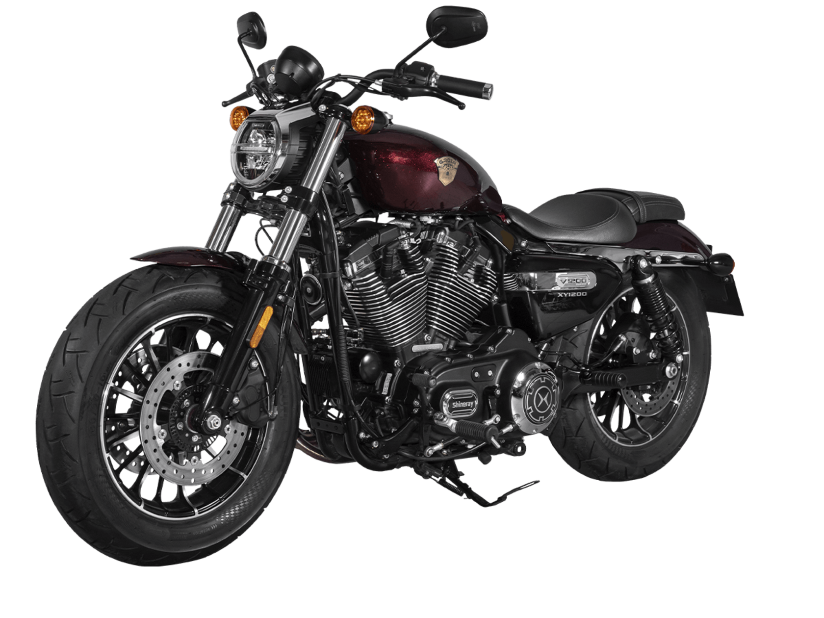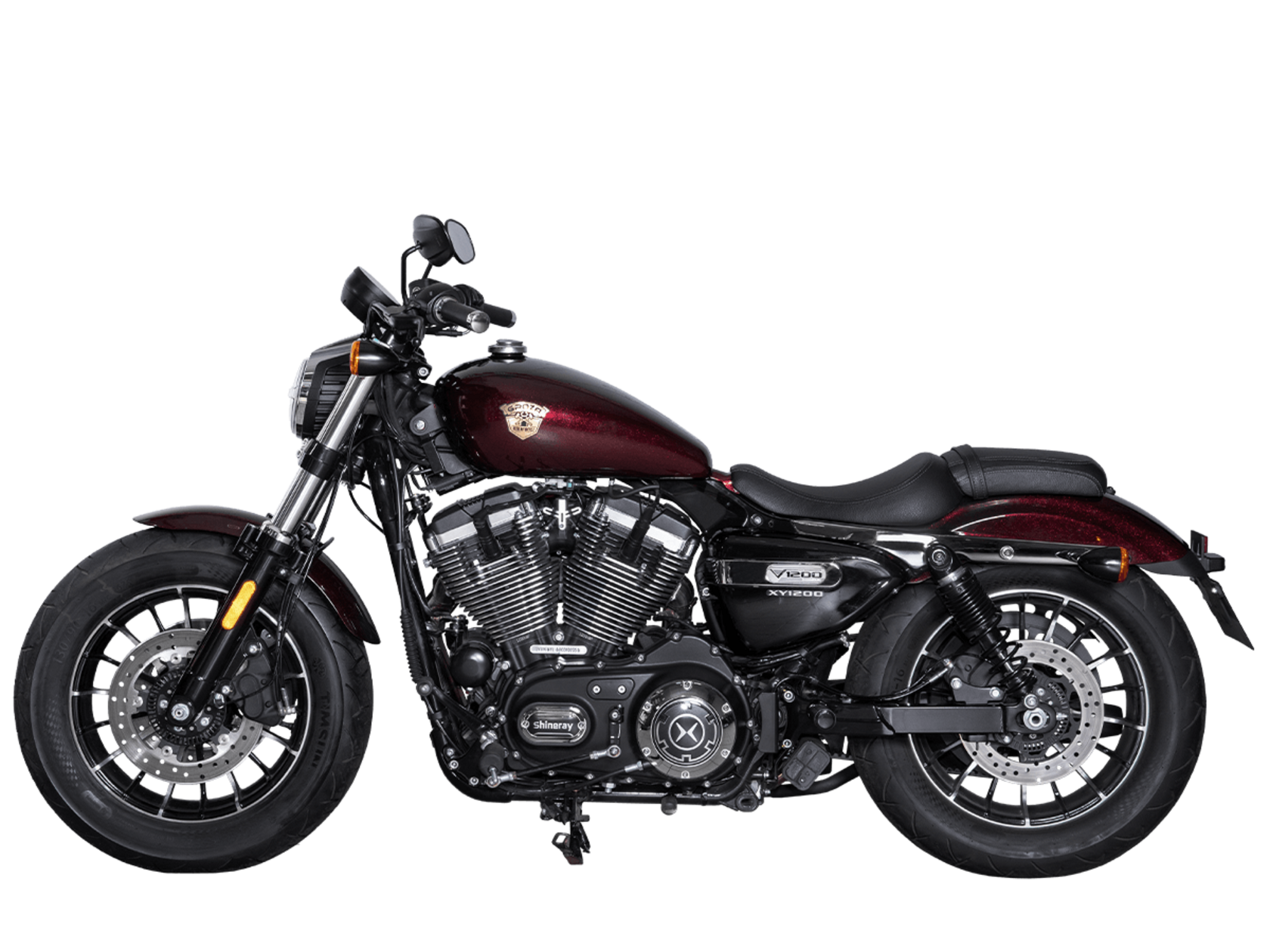 Мотоцикл GROZA V1200 2025 – брутальный круизёр в классическом стиле, готовый к покорению городских пространств и скоростных трасс.Оснащён 2-цилиндровым V-образным 4-тактным двигателем объёмом 1200 см³ с 2 распредвалами, 4 клапанами на каждом цилиндре и воздушным типом охлаждения. Максимальная мощность в 61 л.с. достигается при 5500 об/мин, а максимальный крутящий момент 91 Н·м при 4000 об/мин. Трансмиссия представлена 5-ступенчатой механической коробкой передач.Максимальная скорость 170 км/ч.Объём топливного бака 14 литров.На мотоцикл установлены литые алюминиевые колёса диаметром 16 дюймов. В качестве подвески спереди используется телескопическая вилка с диаметром пера 49 мм, а сзади установлены 2 пружинно-гидравлических амортизатора с регулировкой преднатяга. За торможение отвечает дисковая гидравлическая система. Передние тормоза имеют двойной диск диаметром 280 мм с 2-поршневым суппортом, а задние имеют диск 260 мм с однопоршневым суппортом с плавающей скобой и системой ABS.Габариты 2180х830х1100 мм, вес 252 кг. Колёсная база 1500 мм, клиренс 110 мм, высота по сиденью 710 мм.Комплектация и внешний вид мотоцикла могут отличаться в зависимости от поставки. Изображение на сайте не гарантирует наличие тех или иных опций. Уточняйте информацию при оформлении заказа.