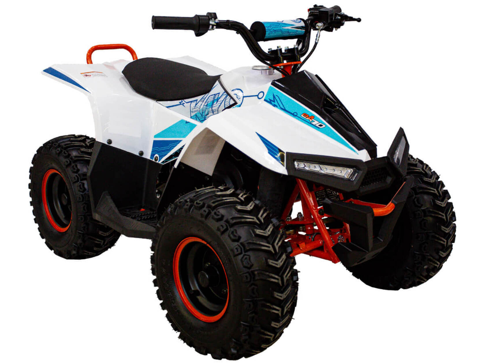 Квадроцикл KAYO EA70 – мощная внедорожная техника для весёлых и безопасных заездов на природе. Подходит для детей от 4 до 8 лет.Оснащён бесщёточным электродвигателем мощностью 500 Вт. Обеспечивает плавную и бесшумную езду без выхлопных газов. Свинцово-кислотный аккумулятор 48V20AH обеспечивает запас хода 50 км. Полная зарядка аккумулятора занимает около 8 часов. Трансмиссия представлена 3-ступенчатой коробкой с реверсом. Квадроцикл имеет систему плавного ускорения и торможения, что обеспечивает комфорт и безопасность во время заездов. Имеется регулируемый ограничитель максимальной скорости. Грузоподъёмность квадроцикла 50 кг.Диаметр колёс 7 дюймов. Подвеска спереди представлена нерегулируемым амортизатором длиной 250 мм, а сзади – регулируемым амортизатором длиной 235 мм. Сзади установлен гидравлические дисковые тормоза.Приборная панель представлена электронным дисплеем, куда выводится информация о скорости, заряде аккумулятора и километраже.Габариты квадроцикла 1250х780х820 мм, вес 93 кг.Внимание: поставляется в разобранном виде. Предназначен для самостоятельной сборки.