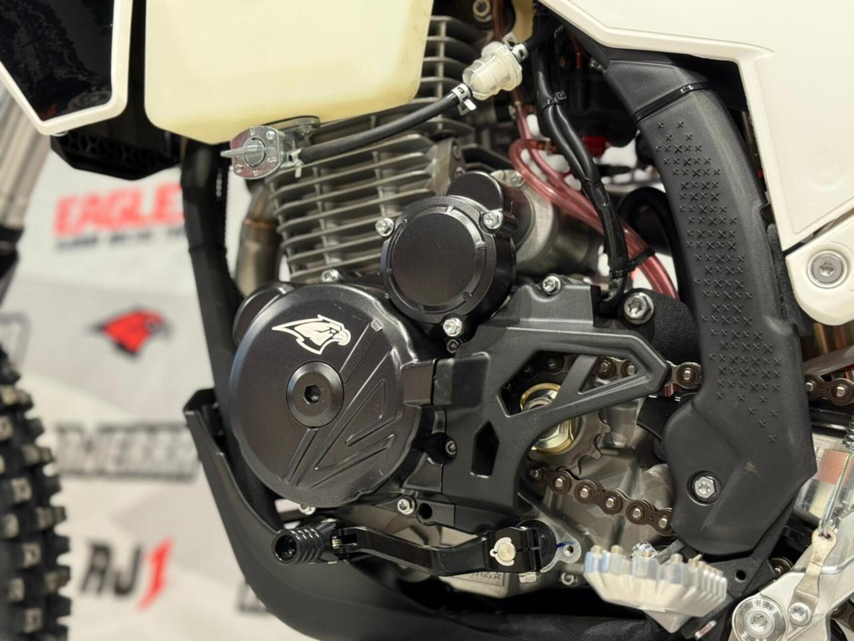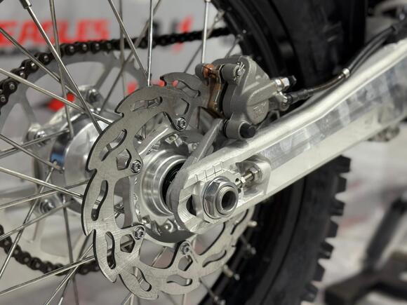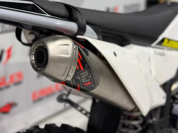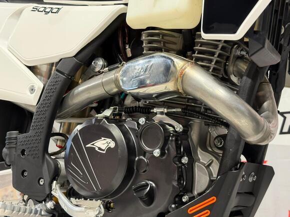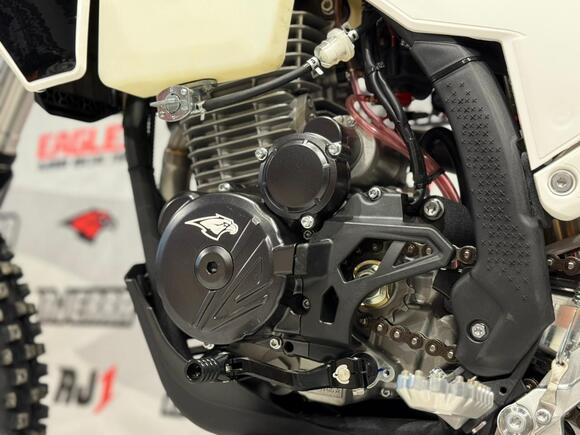 Мотоцикл AJERRA SAGAI C10 YB300H — это современный эндуро-байк, разработанный для уверенной езды как по пересечённой местности, так и по лёгкому бездорожью. Прочная рама К10 завода AJ1, копия KTM 2024 года, обеспечивает стабильность и точность управления в любых условиях, а качественный пластик в стиле Husqvarna 2024 года добавляет динамичный и стильный внешний вид. Двигатель Loncin YB300H 176 FMN с воздушным охлаждением демонстрирует надёжную работу, стабильную тягу и простоту обслуживания. В сочетании с карбюратором Nibbi Racing PWK 34 Black он обеспечивает точную подачу топлива и отзывчивость на газ, что делает мотоцикл удобным для активной езды и тренировок. Подвеска модели тщательно продумана: передняя вилка HTW SCC 930 мм с одним картриджем и задний амортизатор HTW 2450 с прогрессией гарантируют плавность хода и контроль над мотоциклом на неровных поверхностях. Алюминиевый маятник и фрезерованные траверсы AJ1 2024 повышают прочность конструкции и долговечность техники. Эргономика и управление на высоте: усиленный руль AL7075, алюминиевые подножки AJ1 2024 (копия S3), ручка газа Nibbi и грипсы Lock ON обеспечивают комфорт и надёжность в любых условиях. Светодиодная оптика 2 EYE LED Generation 4 (50W) позволяет безопасно ездить даже в сумерках, а алюминиевые обода UNISON 7116 и фрезерованные ступицы повышают прочность колёсной базы. Мотоцикл оборудован цепью KMC 520 Pro, алюминиевой ведомой звездой AL7075 51 зуб, а также выхлопной системой AJ1 2025, что делает его управляемым и надёжным при любых нагрузках. Для удобства и защиты техники предусмотрены счётчик моточасов, защита рамы и мотора, стропы передние и задние, заглушки руля. Сиденье AntiSkid обеспечивает комфортную посадку и предотвращает скольжение. Высота по седлу составляет 940 мм, что делает AJERRA SAGAI C10 YB300H удобным для райдеров среднего и высокого роста. Этот мотоцикл сочетает в себе высокотехнологичные комплектующие, надёжность и стильный дизайн, подходя как для спортивных покатушек, так и для любительского эндуро.