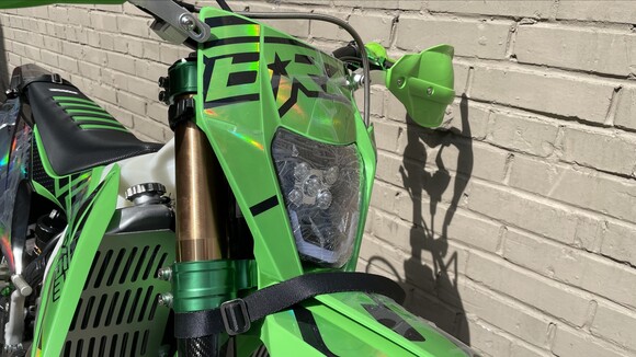 Навесное – Руль усиленный переменного сечения сплав 7075 Fatbar. Короткоходная ручка газа. Алюминиевые траверсы CNC (фрезерованные). Цепь DID 520H (супер усиленная). Алюминиевая лапка КПП