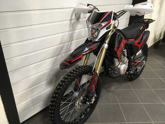 BSE представляет новинку лета 2023 года – Z10 L. За основу мы взяли успешную спортивную модель Z10 и упростили комплектацию, чтобы сделать максимально привлекательный прайс, оставив главные компоненты - мощный 4-х клапанный мотор и усиленную стальную раму. В итоге получили спортивный, легкий и доступный среднеразмерный эндуро мотоцикл, не имеющий конкурентов. Идеально сбалансированный, устойчивый и мощный.Z10 L оснащается эксклюзивным 4-х клапанным мотором Zongshen ZS172 FMM 4V объёмом 250 куб см с воздушным охлаждением. Испытания на диностенде показали мощность в 25 лс. Система подачи топлива – спортивный карбюратор Nibbi 34. Богатый крутящий момент доступен уже с низких оборотов. КПП: 5 – ступенчатая.Z10 L уже в заводской комплектации готов к покорению серьезного бездорожья: нерегулируемая подвеска c большими ходами, рычаги задней прогрессии, “злая” внедорожная резина Chao Yang MX880 ST. Размер задней покрышки: 110/90-18. Мощная гидравлическая тормозная система MOJO Racing остановит байк в любых условиях. На мотоцикле установлены: усиленные черные колёсные диски MOJO с черными спицами, датчик моточасов, металлическая защита рук. Рама мотоцикла окрашена в белый цвет. Размер колес: классический 21/18.На BSE Z10 L можно также с комфортном отправиться в продолжительное путешествие благодаря удобному сиденью, широкому рулю, наличию электростартера и топливному баку на 6.5 литра. C яркой LED фарой головного света и LED задним стоп-сигналом можно кататься в ночное время.
