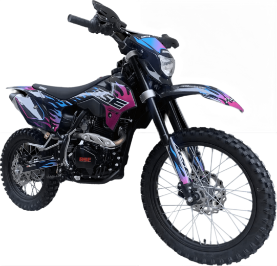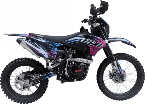 BSE Z2L – надежный эндуро-мотоцикл для бездорожья.Двигатель: ZONSEN 166, 17 л.с., воздушное охлаждение – надежность и простота обслуживания. Две версии колесных пар: - 21"/18"
