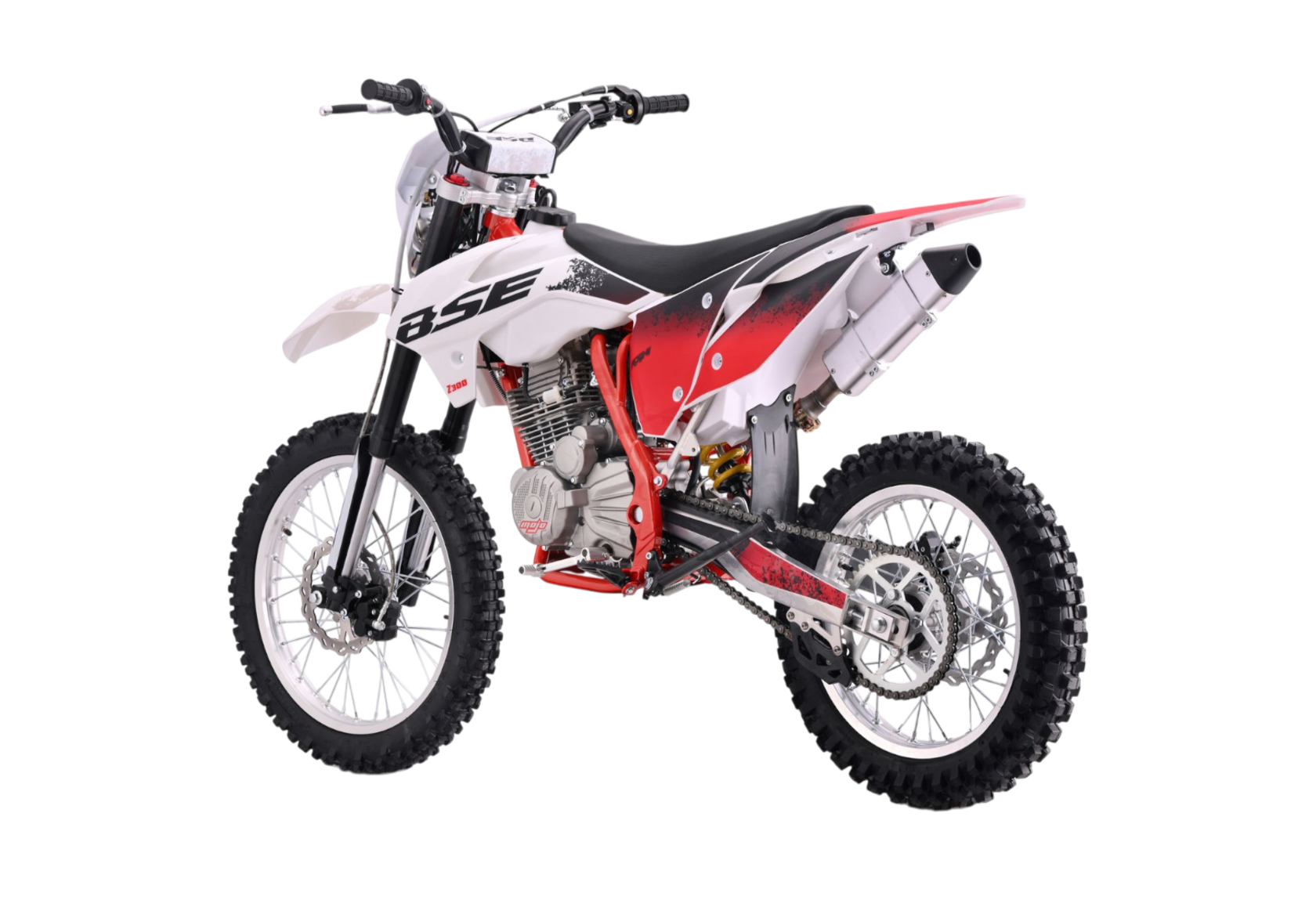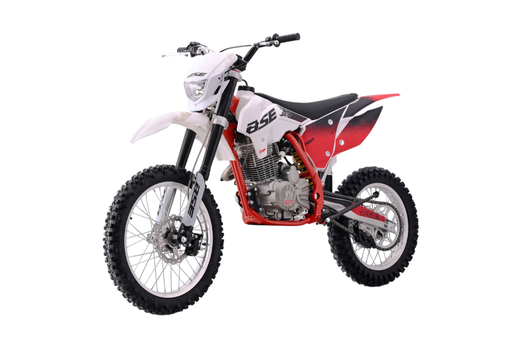 Представляем BSE Z3.00 JumpFury — настоящий кроссовый мотоцикл из легендарной Z-серии, созданный для тех, кто ищет адреналин, свободу и уверенную управляемость вне асфальта. Яркий красно-белый дизайн, агрессивный силуэт и серьёзная техническая начинка делают эту модель идеальным выбором для трейлов, мотокросса и активного отдыха в условиях бездорожья.