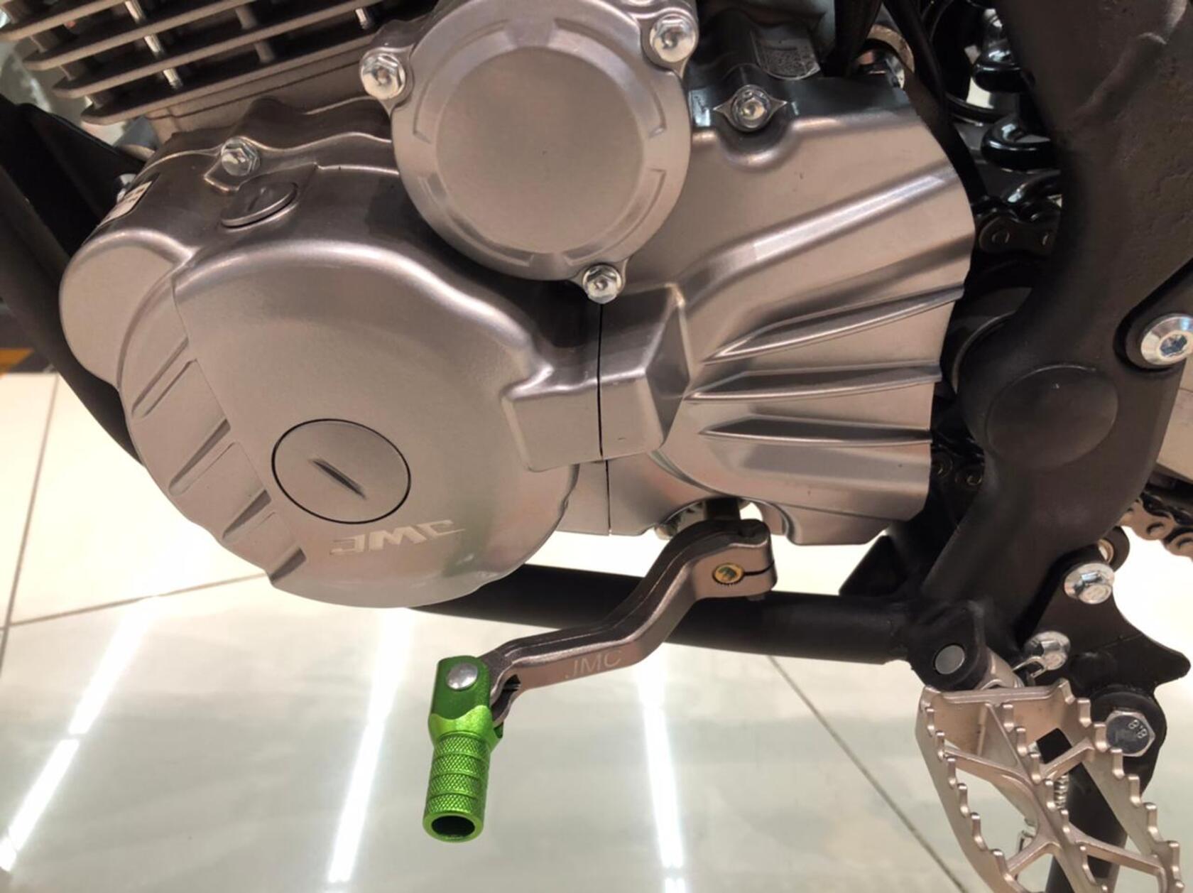 Мотоцикл JMC 250 FR - эволюционная ступень от питбайка к полноразмерному мотоциклу. Он специально создан для райдеров, которые уже выросли из питбайка и хотят раздвинуть свои пределы. Он подойдет и начинающим эндуристам с ростом от 160 см. JMC 250 FR идеально себя чувствует в лесных прохватах с преодолением различных препятствий благодаря небольшому весу, тяговитому двигателю и большим колесам 19/16. Мотоцикл максимально упрощен для большей надежности. Из электрики он снабжен лишь светодиодной фарой и шикарной компактной приборной панелью. Пo сути в нем просто нечему ломаться, можно смело ездить в лесные мото походы на 40 - 60 км. Инженеры JMC moto учли все ошибки конкурентов и снабдили мотоцикл качественными подвесками и алюминиевыми ободами KKE. Был переработан узел верхнего крепления двигателя к раме, избавивший от повышенных вибраций. Ведомую звезду закрепили на 6 потайных болтов. Ну и не стали экономить на карбюраторе - в базе установлен NIBBI PE 30! Подведя итог можно смело заявить что JMC 250 FR - идеальный выбор для тех, кто хочет купить настоящий мотоцикл по цене питбайка!У нас Вы можете купить этот мотоцикл с бесплатной доставкой по РФ и гарантией до года. Также его можно приобрести в рассрочку или в кредит.