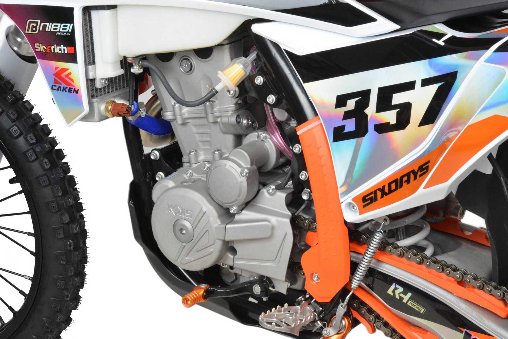 Kews K 24 PRO оснащен мощным мотором 176 MN объемом 300 куб. см с воздушным охлаждением. Это обеспечивает отличную производительность и надежность, а также позволяет мотоциклу уверенно справляться с разными типами трасс и сложными условиями.Мотоцикл оборудован 6-ступенчатой механической коробкой передач, что обеспечивает гибкость в выборе режима езды и позволяет оптимально использовать мощность двигателя в различных условиях.Kews K 24 PRO имеет карбюратор NIBBI PWK 32, который обеспечивает эффективное топливопитание и оптимальную работу двигателя даже в сложных условиях. Это способствует улучшению динамики разгона и общей надежности работы мотора.Мотоцикл оснащен усиленными спицами и алюминиевыми ободами от компании UNISON, что улучшает прочность колес и устойчивость к ударам при езде по сложным маршрутам. Подвеска Kews K 24 PRO имеет все возможные регулировки, что в свою очередь, позволяет настроить мотоцикл под разные задачи и условия езды , и чувствовать себя уверенно на различных трассах.