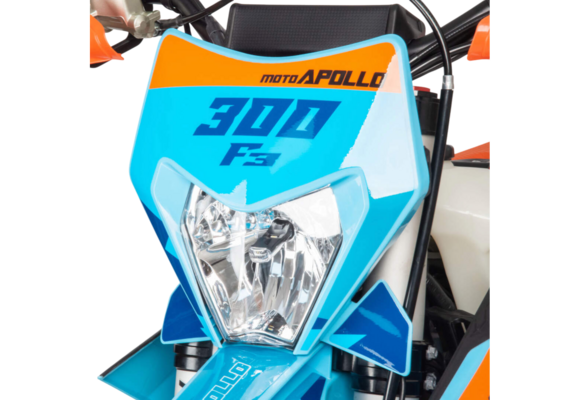 Moto Apollo F3 300 в этой версии — это сбалансированный кроссовый мотоцикл, разработанный для уверенной и динамичной езды по бездорожью. Несмотря на обозначение двигателя NB300F, его реальный рабочий объём составляет 300 см³, а максимальная мощность — 25 лошадиных сил. Воздушное охлаждение, цепной привод ГРМ и отсутствие балансирного вала обеспечивают классическую кроссовую простоту конструкции, лёгкость обслуживания и высокую ремонтопригодность даже в полевых условиях.