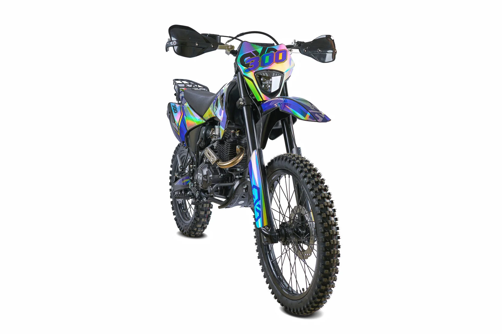 ДвигательДвигатель ZS175FMN 271 куб см с воздушным охлаждением выдаёт максимум мощности. Характеризуется хорошей тягой с самых низов и лёгким пуском с помощью электростартера. Повышенная износостойкость и качественные детали изделия позволяют применять к нему самые жёсткие требованияРамаРама мотоцикла OXO производится из труб шестигранного сечения хром-молибденовой стали, которая является очень прочной и легкой. Геометрия рамы, благодаря правильно выверенному центру тяжести и углу наклона вилки - способствует наилучшей управляемости устойчивости мотоцикла на низкой скорости.ПодвескаПередняя вилка перевернутого типа. Мотоцикл LITE 300 снабжен моноамортизатором, который соединен посредством системы рычагов прогрессии. Система прогрессии, обеспечивает равномерную, мягкую работу и увеличивает длину рабочего хода подвески.КолесаВ переднем и заднем колесах установлены антибуксаторы, которые притягивают покрышку к ободу, позволяя ездить по бездорожью при низком давлении в камерах, не давая покрышке проворачиваться во время езды.Размер передней покрышки: 80/100-21. Размер задней покрышки: 120/100-18. Они прекрасно себя ведут по песку и грязи, что позволяет райдеру отлично показать себя на пересеченной местности.Тормозная системаТормозная система мотоцикла - полностью гидравлическая с армированными шлангами. Спереди установлены двухпоршневой суппорт. Задняя тормозная система представлена в виде однопоршневого суппорта. Данная конфигурация тормозных механизмов, позволит быстро и безопасно остановиться с максимальной скорости даже на бездорожье.РульВажная часть современного эндуро мотоцикла - усиленный руль переменного сечения. Алюминиевая ручка газа с коротким ходом имеет регулировку троса. Также мотоцикл укомплектован электронной панелью приборов.