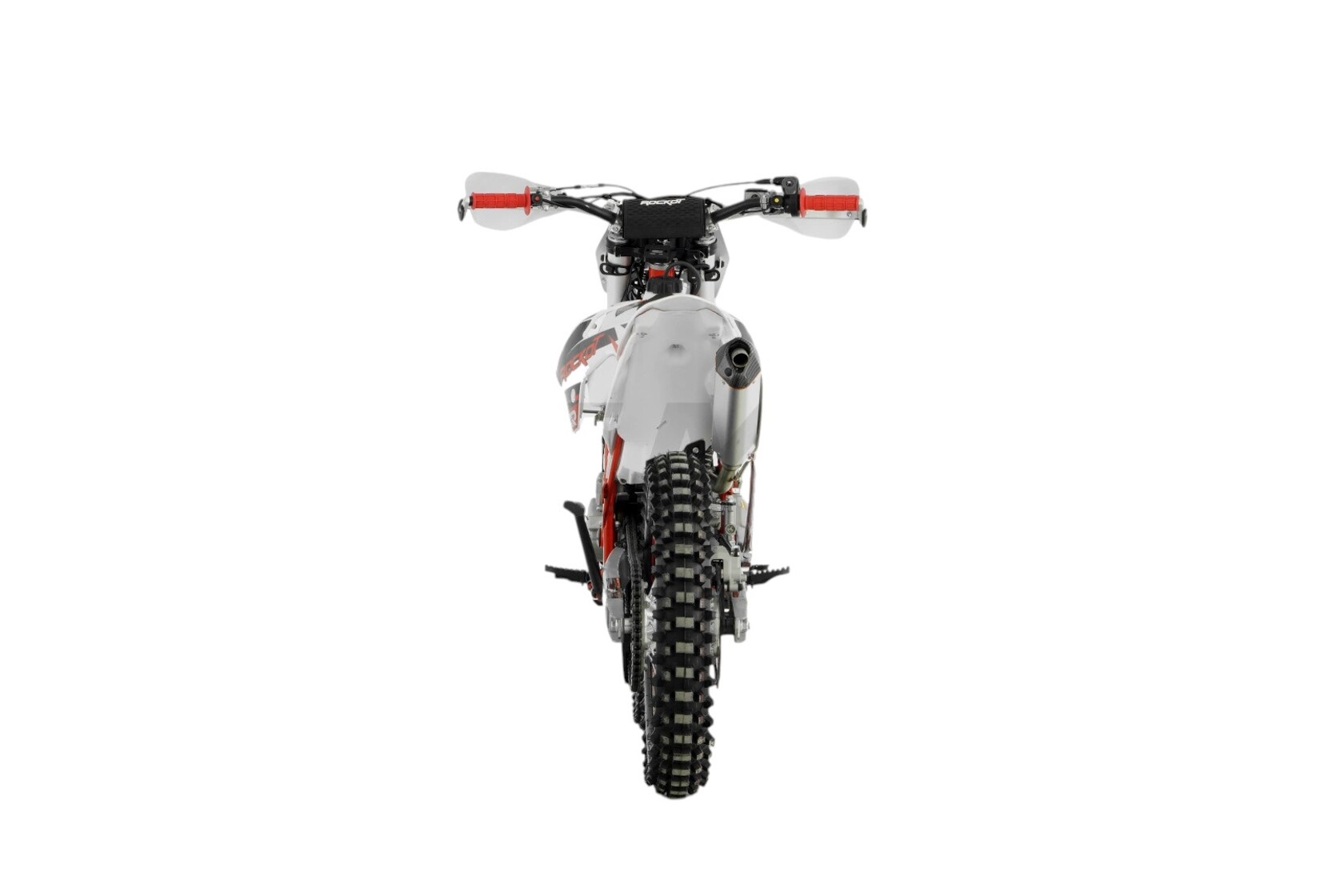 ROCKOT R5X Rampage - среднеразмерный эндуро мотоцикл, являющийся продолжением линейки R Series мотоциклов марки ROCKOT. Байк создан на базе уже “народных” мотоциклов ROCKOT R5F Raptor и R5 Cyclone.Обращаясь к дизайну мотоцикла, видно, что он построен на основе трех цветов: белого, красного и черного, сочетание которых подчеркивает его качества и представляет перед нами легкий, мощный и надежный эндуро мотоцикл.Белый пластик в стиле КТМ15 оклеен в прочную пленку с графикой в основных цветах модели. Рама мотоцикла окрашена в яркий красный цвет, что визуально придает байку свой спортивный характер. На ободах черных алюминиевых дисков нанесены защитные наклейки красного цвета. Все остальные элементы, такие как двигатель, маятник, передние и задний амортизаторы, глушитель окрашены в серебристый цвет, что также придает визуальную легкость байку. ROCKOT R5X Rampage имеет самый большой и мощный двигатель из возможных в линейке R - 175FMN CB250 от завода Zonsen (в 2023 году компания Zongshen провела ребрендинг и сменила имя), мощностью 24 лошадиные силы. Фактически, это тот же народный 172-ой, но с увеличенным цилиндром (Big Bore) на 271 см³.Данная модель двигателя славится своей простотой и надежностью, что и позволило ему стать самым популярным двигателем для эндуро мотоциклов.Коробка передач - пятиступенчатая, с многодисковым сцеплением в масляной ванне. Двигатель оснащен электростартером, но и кик-стартер остался на месте, ведь для использования мотоцикла в эндуро это очень важно.Выхлопная система выполнена из нержавеющей стали (приемная труба) и алюминиевого глушителя.За образование и подачу топливной смеси отвечает карбюратор PE28, чья конструкция также проста и надежна, как и сам двигатель. Эндуро мотоцикл ROCKOT R5X построен на среднеразмерной раме типа “К5” из хром-молибденового сплава стали, что дает ей высокую прочность и малый вес. Геометрия рамы обеспечивает высокий уровень управляемости и маневренности, а также стабильность на высокой скорости, несмотря на короткую базу в 1350 мм. Подвеска является одним из важнейших элементов эндуро мотоцикла. Поэтому здесь установлена длинноходная вилка спереди и моноамортизатор с системой рычагов прогрессии сзади. Длина передних амортизаторов составляет 830 мм, а толщина их рабочих штоков - 37 мм, что уже является золотым стандартом для эндуро мотоциклов среднеразмерной компановки. Задний моноамортизатор имеет регулировку скорости отбоя и преднатяжения пружины.Спереди и сзади установлены гидравлические тормозные механизмы. Спереди: тормозной диск диаметром 270мм и двухпоршневой суппорт. Сзади: тормозной диск диаметром 240 мм и однопоршневой суппорт. Вся гидролиния переднего и заднего тормозов выполнена из армированных шлангов, что повышает производительность тормозной системы и делает ее более надежной.Колеса мотоцикла ROCKOT R5X Rampage имеют стандартную для эндуро формулу - 21/18. Передний и задний колесные диски произведены из алюминиевого сплава высокой прочности. С завода мотоцикл комплектуется кроссовыми шинами размерностью 80:100-21 спереди и 110:90-18 сзади. На заднем колесе установлена ведомая приводная звезда на 47 зубьев под 520-ю цепь. Как настоящий спортивный снаряд, модель R5X Rampage оснащена только самым необходимым: яркая LED фара, руль переменного сечения (Fat Bar) 22/28, влагостойкие кнопки запуска и остановки двигателя, алюминиевые рычаги сцепления и 