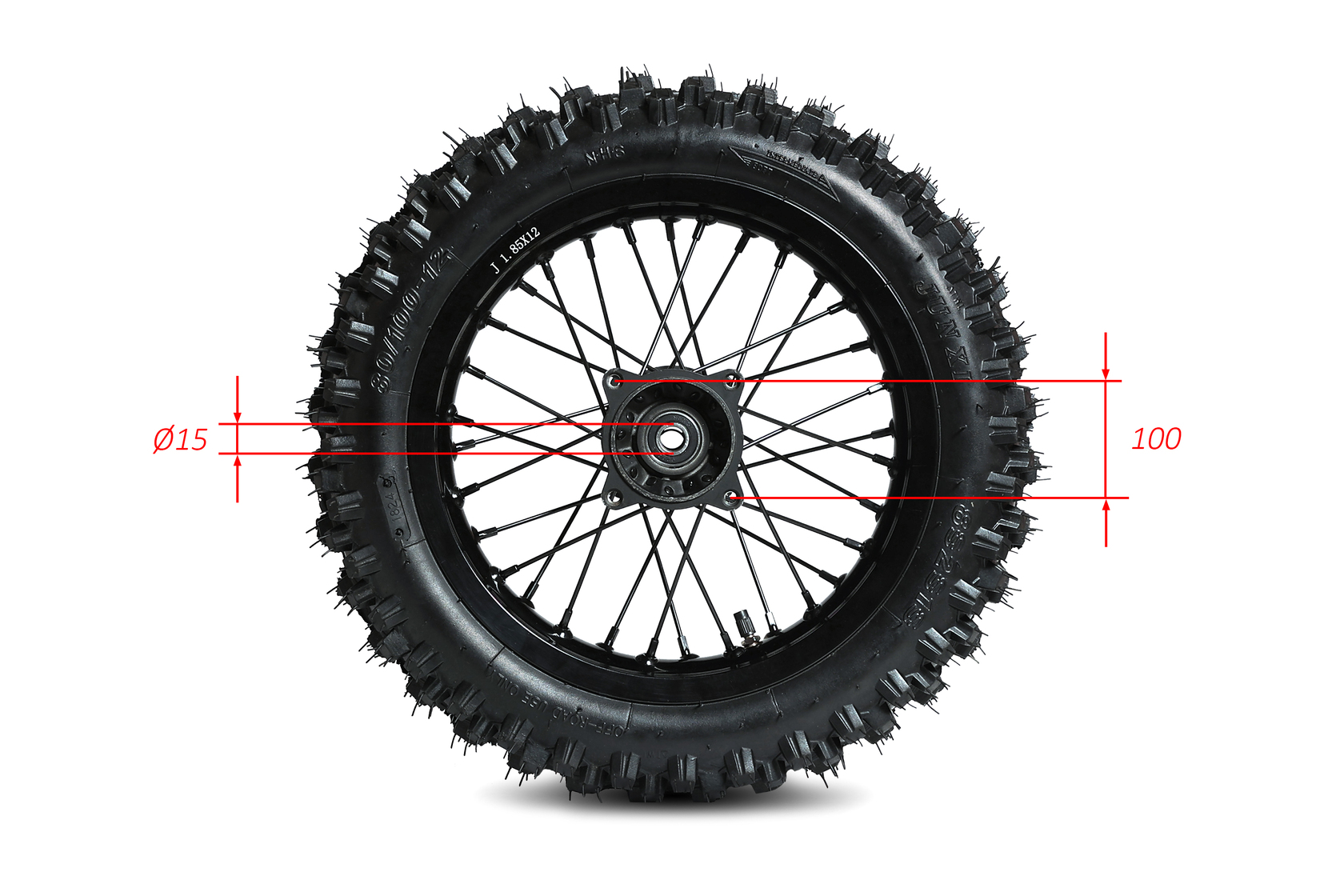 • Готовое к установке заднее колесо R12 для большинства питбайков с алюминиевой ступицей под ось 15 мм. В комплекте надёжная покрышка Yuanxing 80/100-12. Колесо поставляется без звезды и тормозного диска, что позволяет использовать уже имеющиеся элементы с вашего мотоцикла или приобрести совместимые компоненты отдельно.