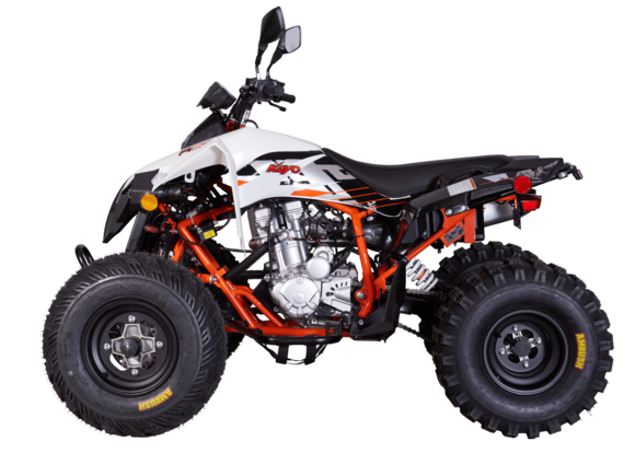 Квадроцикл KAYO AU150 CVT – идеальный вариант для начинающих покорителей бездорожья возрастом от 14 лет, ведь он сочетает в себе тяговитый двигатель, энергоёмкую подвеску, отличную эргономику и агрессивный дизайн.Квадроцикл оснащён проверенным временем 4-тактным одноцилиндровым двигателем воздушного охлаждения объёмом 150 см3 (JN1P57QMJ), который позволяет развивать максимальную мощность 8 л.с. Карбюраторная система подачи топлива с карбюратором JK-PD24J-1e обеспечивает бесперебойную работу техники в самых жёстких условиях эксплуатации, простоту и лёгкость в обслуживании, а также неприхотливость к качеству топлива.Автоматическая трансмиссия вариаторного типа также снабжена реверсом, который особенно облегчает маневрирование в ограниченных пространствах. Привод на ведущие задние колёса осуществляется цепью. Рама квадроцикла выполнена из хром-молибденового сплава, поэтому она лёгкая, прочная и обеспечивает отличную жёсткость и защиту от повреждений. На квадроцикл установлены литые алюминиевые диски диаметром 10 дюймов, обутые в покрышки с ярко выраженным грунтозацепом (параметры шин: передняя – 10'' AT23*7-10" задняя – 9'' AT22*10 -9").Ходовая часть квадроцикла базируется на передней независимой двухрычажной подвеске с шаровыми опорами и нерегулируемыми амортизаторами, сзади установлена маятниковая подвеска с моноамортизатором, жесткость преднатяга пружины которого можно отрегулировать. Эффективное замедление с любых скоростей обеспечивают гидравлические дисковые тормоза спереди и сзади. Аппарат обладает комплектом качественной светотехники, широкими защитными крыльями, крепким багажником для перевозки небольших грузов, а также эргономичным сиденьем и удобным рулевым управлением, что обеспечивает комфортную езду.Благодаря наличию ПТС квадроцикл можно поставить на учёт, чтобы ездить по дорогам общего пользования. AU150 CVT сочетает в себе отличные технические характеристики, комфорт и надёжность, что позволяет вам ощутить настоящую свободу на любой дороге с любым покрытием.Купить квадроцикл KAYO AU150 CVT по выгодной цене можно, оформив онлайн-заказ на нашем сайте.