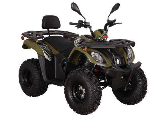 KAYO A200 - одна из топовых моделей в линейке мотовездеходов известного производителя. Популярный спортивный комплект отличают незаурядные показатели развиваемой мощности и широкие возможности практического применения. Данная модель может использоваться в качестве надежного транспорта для поездок по бездорожью, а также стать напарником для спортивных развлечений и активного отдыха.В раме установлен один из самых популярных моторов производства компании Zongshen - одноцилиндровый 4-тактник ZS165FMM рабочим объемом 199 см3, который в паре с карбюратором KEIHIN PZ30 способен выдавать 16 лошадиных сил максимальной мощности. Для поддержания оптимального температурного режима работы двигателя с балансирным валом и механической коробкой передач используется дополнительный контур масляного охлаждения.Подвеска квадроцикла KAYO A200 собрана с учетом особенностей использования модели: передние гидравлические амортизаторы с увеличенным ходом задействованы в независимой рычажной подвеске; задняя подвеска маятникового типа оснащена мощным моноамортизатором со ступенчатой регулировкой преднатяга пружины и параметров сжатия/отбоя.Электрооборудование данной модели представлено индикаторами нейтральной передачи и заднего хода, замком зажигания и кнопками старта/остановки двигателя. Максимальное удобство использования техники в условиях недостаточной освещенности и в темное время суток обеспечивают крупноформатные галогеновые фары с регулировкой положения светового пучка и задний габаритный фонарь, совмещенный со стоп-сигналом.