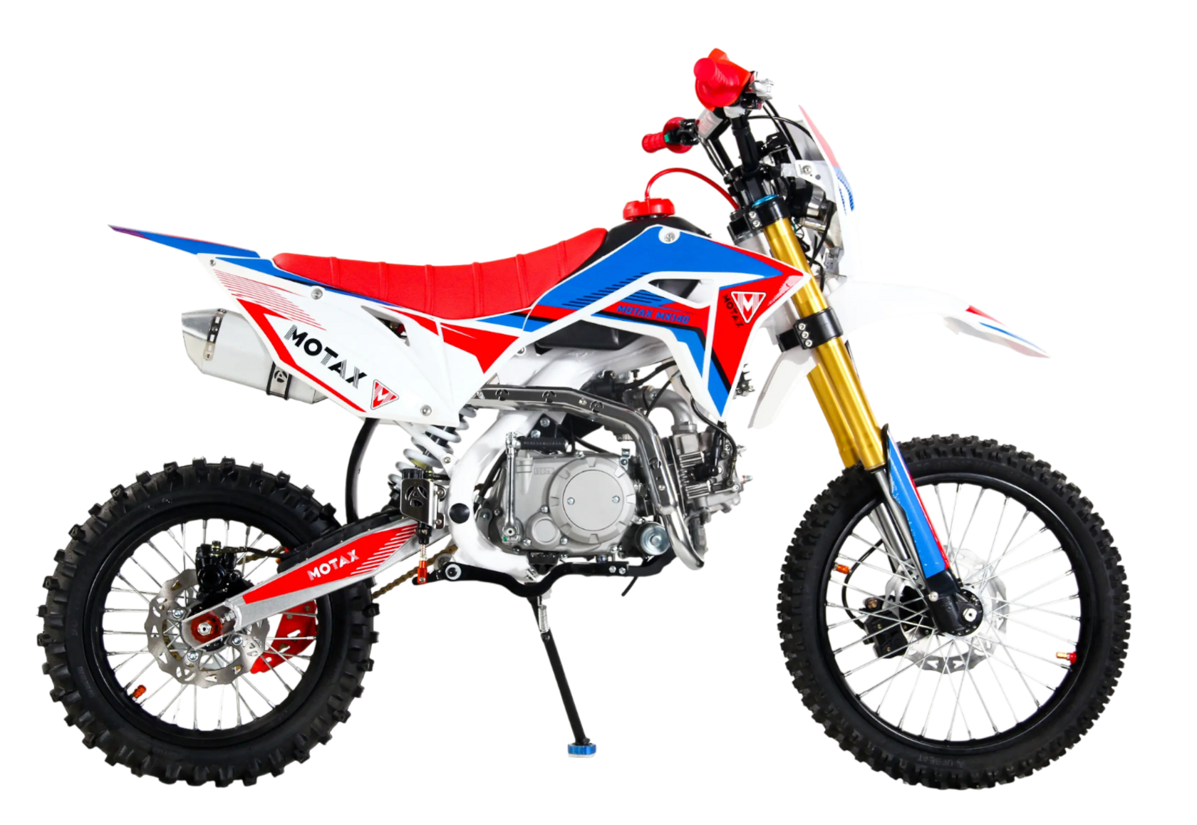 Взрослый бензиновый питбайк MOTAX MX 140 (17/14) оснащен четырехтактным бензиновым двигателем 1P56FMJ с верхним распределительным валом и масляным охлаждением, имеющим два клапана на цилиндр, что обеспечивает стабильную работу и длительный срок службы.