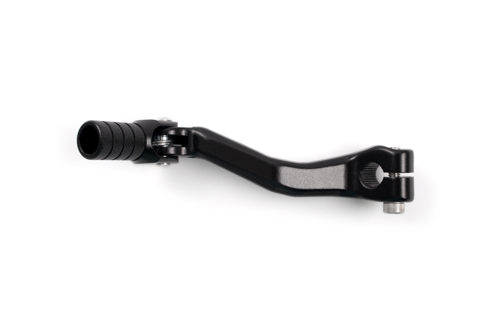 • Алюминиевый складной рычаг переключения передач черного цвета для эндуро мотоциклов с двигателями 165-172 FMM и 174 CBS-NB. Изготовлен из литого алюминия со складным кончиком, который предотвращает поломку рычага при падении или боковом ударе. Универсальная конструкция с вылетом, не гнет вал при падениях. Установка без втулки. Совместим с двигателями 165FMM, ZS170MM-2, ZS172-3A, ZS172-5A, ZS174MN-3.