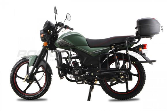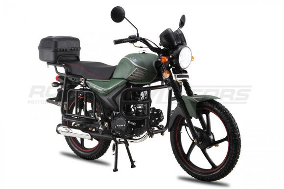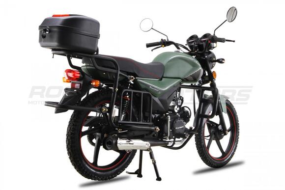 Мопед RC50-A оснащен одноцилиндровым 49 кубовым двигателем воздушного охлаждения, развивающий мощность 3,5 л.с. Максимальная скорость при этом около 45 км/ч. Этого достаточно что бы ездить на рыбалку или работу. Грузоподъемность этого мопеда составляет 150 кг, а задние амортизаторы усилены поэтому Вы сможете возить на багажнике дополнительный груз. Отличную маневренность и управляемость обеспечивают передняя телескопическая вилка и барабанные тормоза спереди и сзади.Данная модель поставляется с увеличенной ЦПГ на 110ссУ нас Вы можете купить этот мотоцикл с бесплатной доставкой по РФ и гарантией до года. Также его можно приобрести в рассрочку или в кредит.