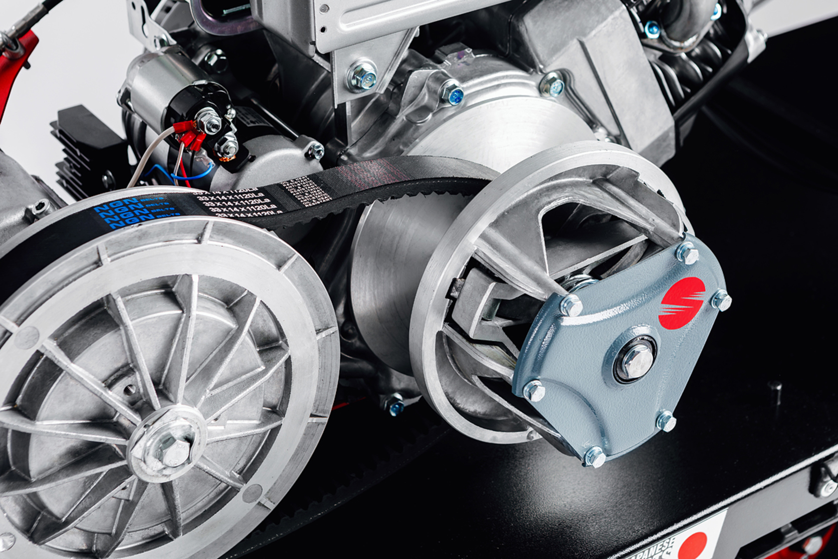 • 12. Мотобуксировщики IKUDZO имеют идеальную балансировку и нагрузку на гусеницу. Двигатель размещён так, что даже без дополнительного груза на мотособаке давление на снег будет равномерно, что значительно повышает проходимость!