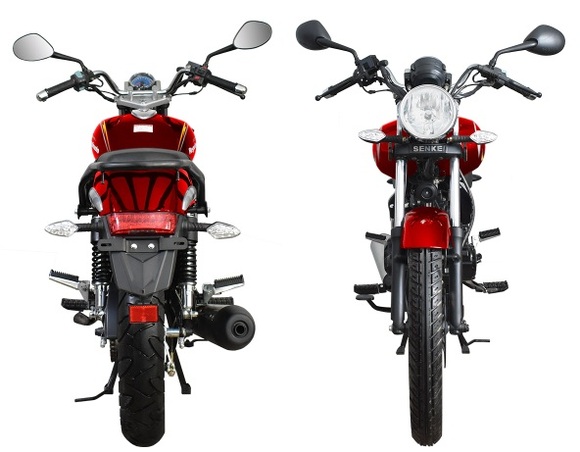 Несмотря на классический внешний вид Regulmoto SK 150-8 отличается достаточно интересным и продуманным дизайном. В раме мотоцикла установлен одноцилиндровый 4-тактник с воздушным охлаждением с рабочим объемом в 149 см3. Двигатель можно запускать как кнопкой электростартера, так и при помощи традиционного кик-стартера. В целом байк выглядит лаконичным и современным – еще одной приметой актуальных трендов стали литые диски переднего 18-дюймового и заднего 16-дюймового колес. Также на переднем колесе установлен дисковый тормоз, хотя в ступице заднего колеса реализован проверенный многими десятилетиями вариант с тормозом барабанного типа. Характерная для «дорожников» подвеска представлена телескопической вилкой впереди и двумя амортизаторами сзади.