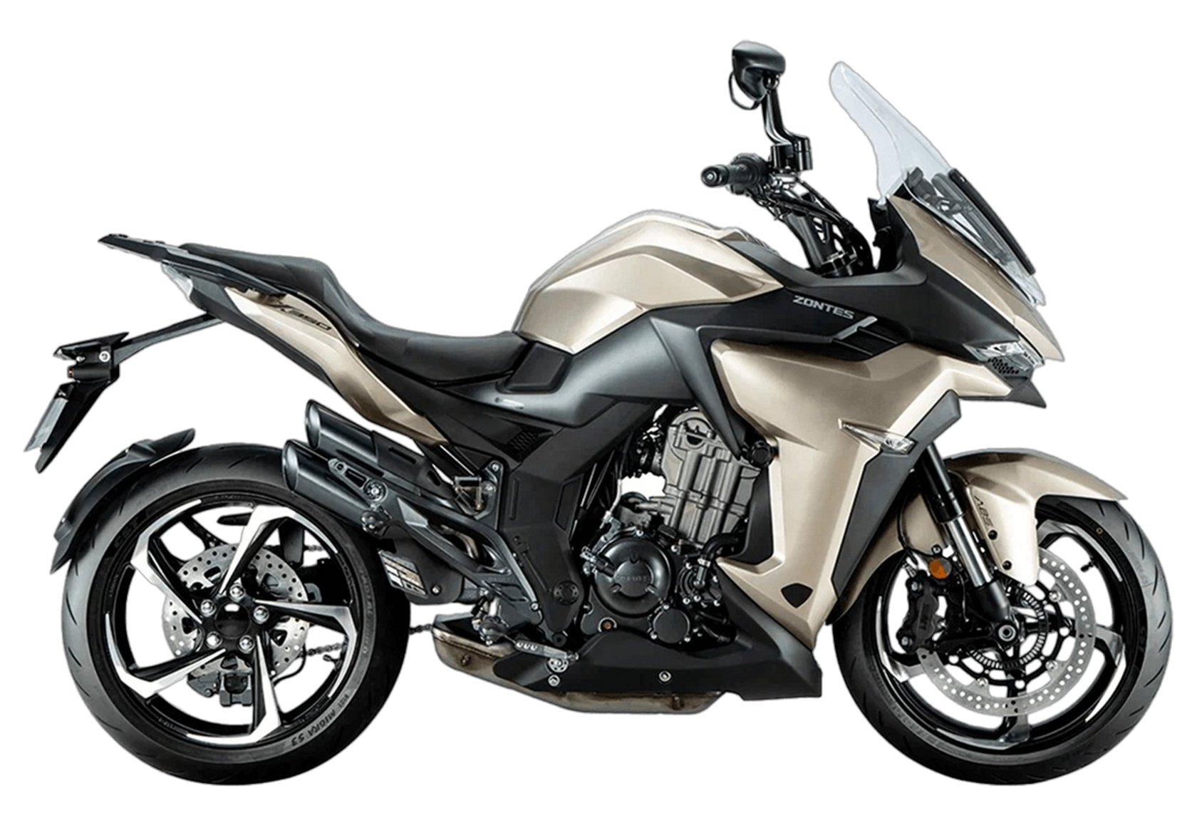 Мотоцикл ZONTES ZT350-X1 – турист со стремительным современным дизайном. Хорошо подходит как для повседневных поездок по городу, так и для покорения дальних маршрутов.Силовая установка представлена одноцилиндровым 4-тактным двигателем ZT184MP с 4 клапанами и 2 верхними распредвалами. Двигатель имеет объём 348 см³ и обеспечивает мощность в 39 л.с. Оснащён инжектором BOSCH и системой жидкостного охлаждения. Механическая коробка передач имеет 6 ступеней и схему 1-N-2-3-4-5-6. Запуск двигателя осуществляется с помощью бесключевого доступа.Ёмкость топливного бака 19 литров.Колёса представлены литыми алюминиевыми дисками диаметром 17 дюймов. На мотоцикл установлены датчики давления в шинах, показатели от которых выводятся на приборную панель. Для подвески спереди используется телескопическая вилка, сзади – моноамортизатор. Гидравлические дисковые тормоза произведены испанской компанией J.JUAN, входящей в холдинг BREMBO.Для освещения используется яркая LED-оптика, а приборная панель представлена цифровым дисплеем. Рычаги тормоза, сцепления и лапки КПП можно отрегулировать. Имеется 2 USB-порта.Габариты мотоцикла 2055х795х1330 мм. Колёсная база 1395 мм. Высота по седлу 795 мм. Вес 169 кг.