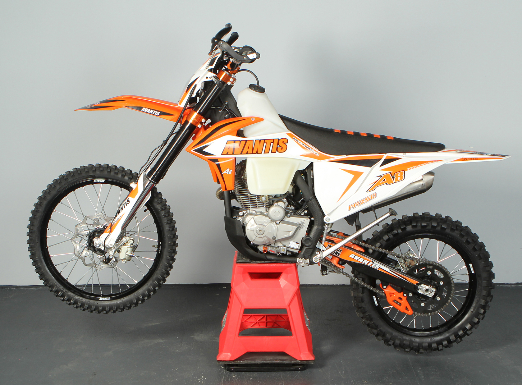 Новый Avantis A8 разработан специально для тех, кто хочет войти в мир эндуро. Комплектация с двигателем ZS 172 FMM-5 — именно тот вариант, с которого стоит начать новичкам.Мощность двигателя составляет 25 л.с., что является оптимальным выбором для первых тренировок на оффроуде. Внедорожная компоновка модели приближена к спортивной серии Avantis Enduro, поэтому данная модель отличается легкостью в управлении и не потребует больших усилий при маневрировании даже у тех, кто впервые сел за руль мотоцикла.Благодаря надежной подвеске ККЕ и большому дорожному просвету Авантис А8 легко преодолевает даже самый сложный рельеф. Однако важно помнить, что это полноразмерный взрослый мотоцикл. Высота по седлу у него составляет 960 мм и накладывает некоторые ограничения: комфортно на этом мотоцикле будет обладателям роста от 175 см и выше.Все элементы управления размещены таким образом, чтобы райдер быстро запомнил расположение основных органов управления. Яркая LED-панель обеспечивает отличную читаемость индикаций и показателей, что позволит легко отслеживать нужную информацию. Яркая светодиодная фара головного света обеспечивает хорошую видимость и большое пятно освещения, поэтому тренироваться на Avantis A8 можно в любое время суток.На Avantis A8 с завода установлены алюминиевая защита рычагов, пластиковая защита картера и герметичная защита всех разъемов. Колеса мотоцикла базируются на легких и прочных ободах UNISON и обуты во внедорожную резину Yuanxing. Данные покрышки отличаются редкой шашкой и обеспечивают хороший зацеп.Приобретая Авантис А8 вы получаете управляемый, надежный, а главное — полностью подготовленный для тренировок мотоцикл, на котором уже в базовой комплектации имеется все необходимое для покорения бездорожья.