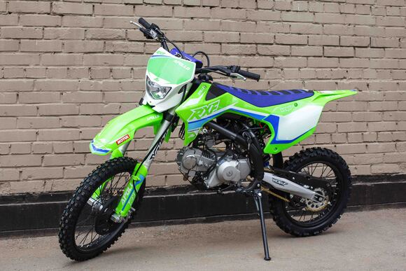 Представляем Вам обновленный RXF Freeride 125 LE 19/16. Модель обзавелась фарой, электростартером и также получила обновленный дизайн графики.RXF Freeride 140 L – по праву считается отличным выбором из линейки Freeride. Мотор YX 125 с электростартером достаточно мощный и тяговитый, чтобы не дать скучать опытным райдерам, но в тоже время достаточно покладистый и безопасный для новичков. На обновленном Freeride теперь есть фара головного света, которая идет в комплекте с питбайком.