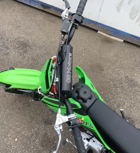 Прорезиненные накладки на раме защитят от протирания и позволят более уверенно держаться на данном питбайке.