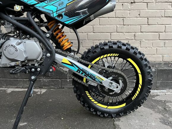 Представляем вниманию поклонников офф-роада и фри-райда питбайк Regulmoto Seven – новинку мототехники Regulmoto модельного ряда 2020 года. Regulmoto Seven – оптимальный выбор для райдера, который позволит своему владельцу совершенствовать навыки управления мототехникой на треке мотостадиона, а также получать максимальное удовольствие от офф-роад рейдов.В раме Regulmoto Seven установлен 125-кубовый 4-тактник YX с электростартером– этот двигатель отлично себя зарекомендовал в качестве надежного и простого силового агрегата. Подготовкой топливной смеси занимается карбюратор Nibbi PE19. Запуск мотора возможен как при помощи кнопки электростартера, так и привычной лапкой кика.Колеса питбайка размером 17/14 дюймов с усиленными алюминиевыми ободьями на 36 спиц «обуты» в качественную кроссовую моторезину Kenda. Установленные на колесах буксаторы предотвратят проворачивание покрышки и защитят камеры от возможных повреждений. Питбайк комплектуется фарой головного света; она включается при помощи поворота ключа в замке зажигания. В качестве элементов защитного обвеса используются пластиковые обтекатели типа CRF.Подбор комплектующих свидетельствует о полной готовности питбайка к покорению бездорожья. Среди стоковых компонентов мини-мотоцикла стоит отметить: