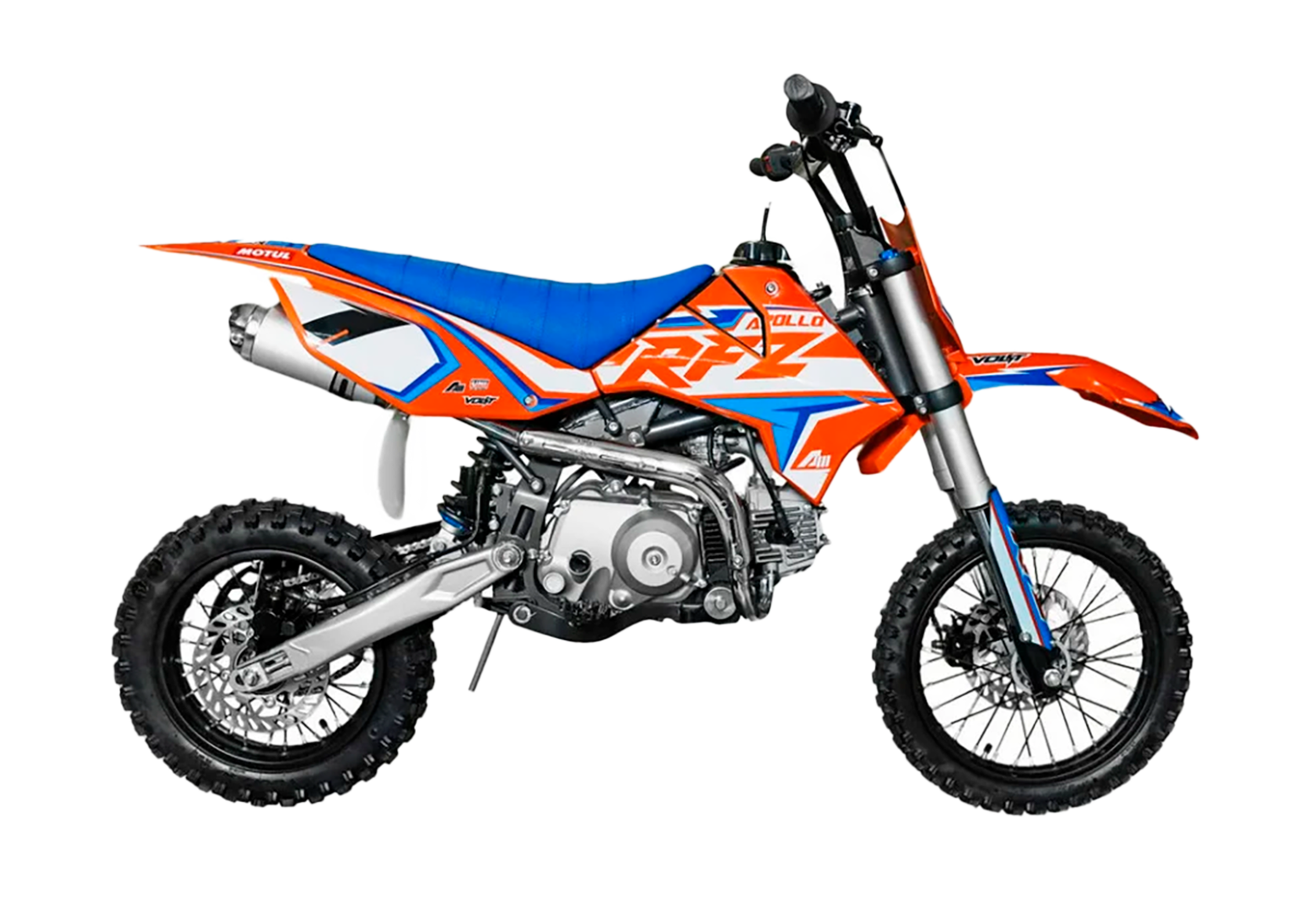 Apollo RFZ START 110E - надёжный питбайк, разработанный инженерами Apollo во Франции. Модели RXF Open оснащены вилочными подвесками V-one Volt Suspension длиной 810 мм. Амортизатор V-One последнего поколения Volt Suspensions, был специально разработан, чтобы позволить раме извлечь выгоду из лучшего сцепления при использовании на бездорожье! Новый фильтрбокс устанавливается на всю линейку RXF. Особенностью этого фильтрбокса является съемный выдвижной ящик, требуется меньше 30 секунд, чтобы сменить воздушный фильтр! RXF Open оснащен тормозными дисками размером 220 мм спереди и 190 мм сзади для достижения максимально эффективного торможения. Модель RFZ теперь стандартно оснащены цепями 428 вместо 420 у моделей конкурентов. Модели RXF Open оснащены надежным 4 тактным одноцилиндровым двигателем YX 110 кубиков и комплектуются колесами 12/10.У нас Вы можете купить этот питбайк с бесплатной доставкой по РФ и гарантией до года. Также его можно приобрести в рассрочку или в кредит.