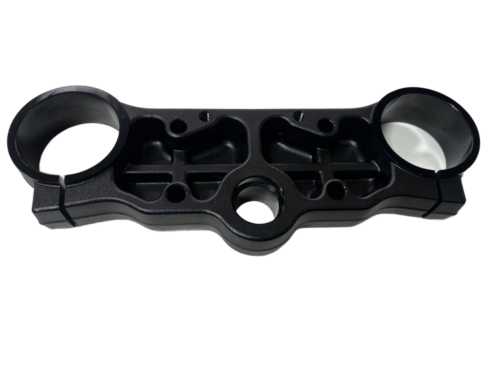 • Алюминиевая верхняя траверса рулевой колонки для питбайков и эндуро мотоциклов. Обеспечивает жёсткое и точное крепление рулевой стойки, гарантируя надёжную управляемость и стабильность на любой скорости. Матовый чёрный цвет придаёт эффектный внешний вид и дополнительно защищает от коррозии. В комплекте поставляется только верхняя часть траверсы.