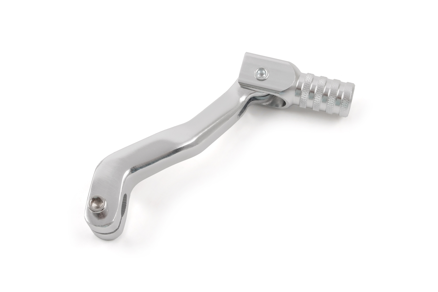 • Алюминиевый складной рычаг переключения передач серебристого цвета для эндуро мотоциклов с двигателями 165-172 FMM и 174 CBS-NB. Изготовлен из литого алюминия со складным кончиком, который предотвращает поломку рычага при падении или боковом ударе. Универсальная конструкция с вылетом, не гнет вал при падениях. Установка без втулки. Совместим с двигателями 165FMM, ZS170MM-2, ZS172-3A, ZS172-5A, ZS174MN-3.