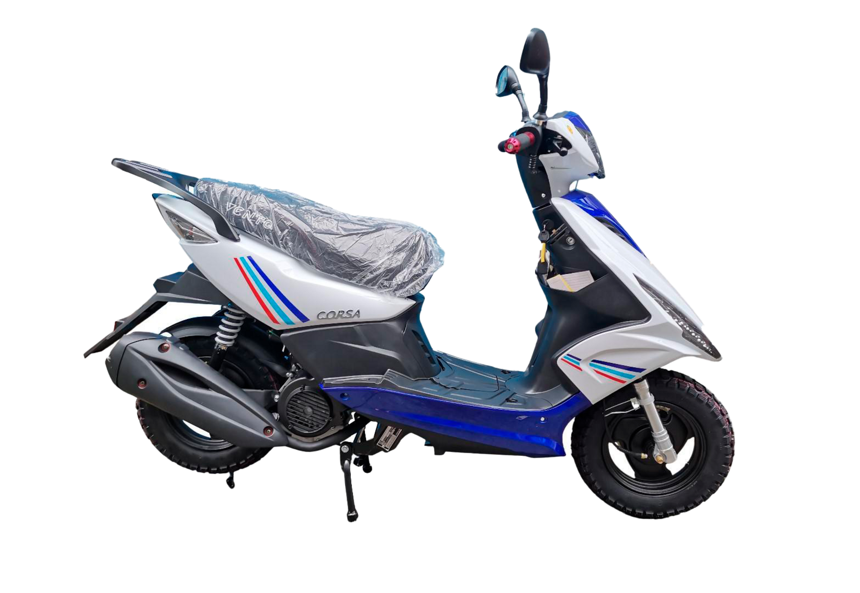 Скутер VENTO CORSA - Стильный и мощный скутер, который не оставит равнодушными любителей агрессивного и спортивного внешнего вида. Мощный 150 кубовый двигатель позволит уверенно держаться в городском потоке.