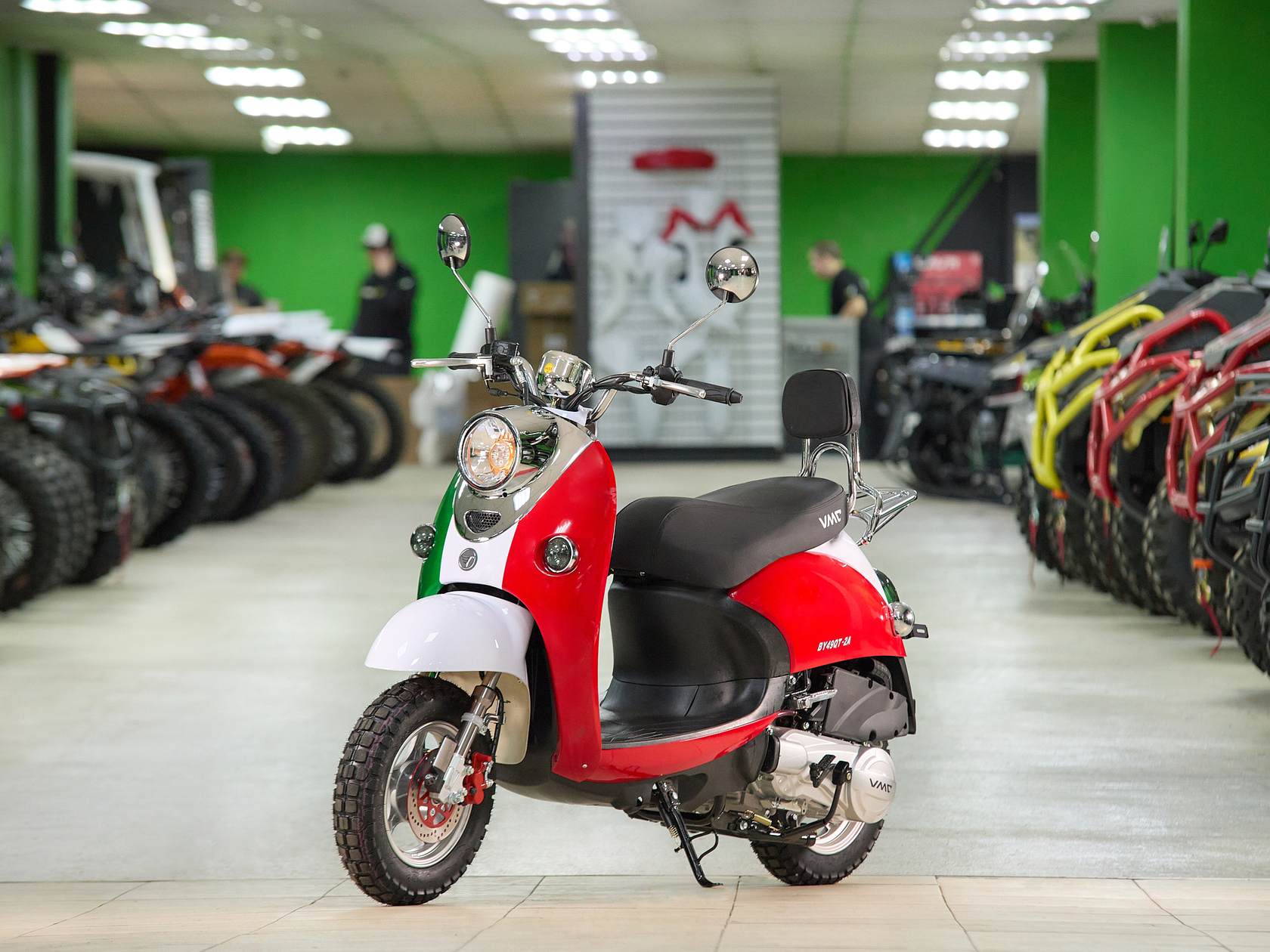 Скутер VENTO RETRO 49cc (150) сигнализация (99кг/100кг) (RED/WHITE/GREEN (Италия))