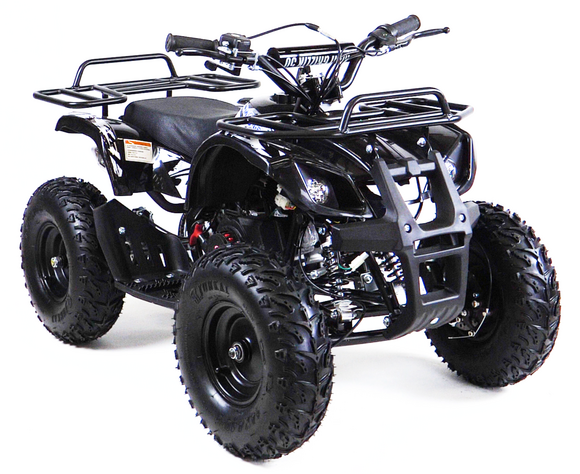 квадроцикл MOTAX GRIZLIK Х16 ES BW(с электростартером и родительским контролем). Отличие от остальных моделей кроется в названии. Этот квадроцикл оборудован 6-дюймовыми колёсами с шинами низкого давления и увеличенного размера, что позволяет получить больший ездовой комфорт и проходимость за счёт увеличенного клиренса.Отлично подойдёт для детей от 3 до 8 лет.Квадроцикл оборудован компактным, двухтактным бензиновым двигателем объёмом 50 куб. см. в паре с фрикционным сцеплением центробежного типа. Это обуславливает простоту и надежность конструкции. Квадроцикл имеет неплохую базовую комплектацию: он оборудован электрическим стартером, пультом дистанционного глушения и запуска двигателя, механическим ограничителем скорости, кнопкой быстрой остановки двигателя, яркими передними светодиодными фарами с режимом ближнего и дальнего света, раздвоенной системой выхлопа, механическим ручным стартером с механизмом легкого запуска. За счёт этого механизма существенно снижено усилие при запуске двигателя, с этой задачей может справиться и ребенок. Простота управления обусловлена фирменной передней подвеской полузависимого типа, которая позволяет сохранить стабильность в движении и лёгкость рулевого управления, что является важным фактором для ребёнка. Передние и задние механические дисковые тормоза способны эффективно остановить лёгкий и прочный квадроцикл. Детский квадроцикл оборудован передним и задним багажниками и прочным передним бампером. Эта модель отлично подойдёт как для получения первого опыта вождения, так и для активной езды по дачным дорожкам и лесопарковым зонам.