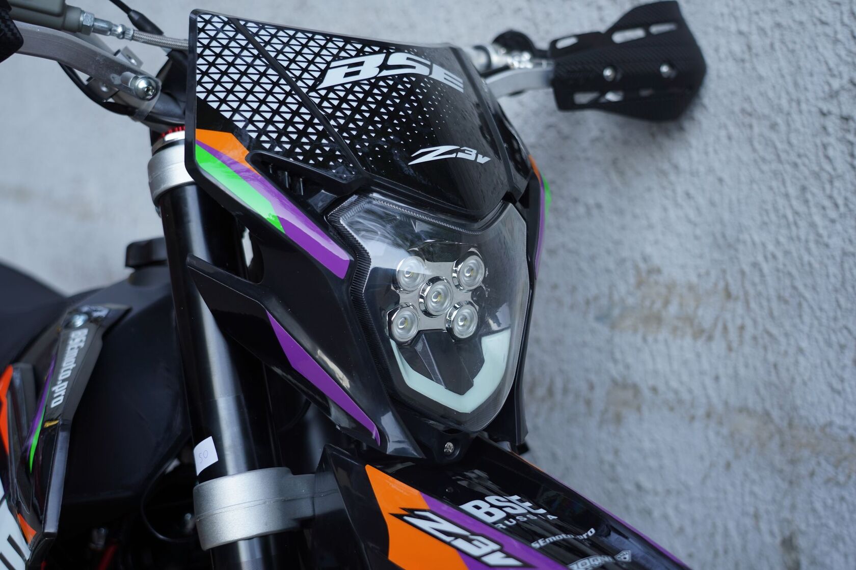BSE RUSSIA представляет новинку 2024 - модель Z3 V!Бестселлер среднеразмерного сегмента BSE Z3 V обзавелся вариацией двигателя Zonsen ZS172FMM-5 с балансирным валом! Теперь минимум вибраций!Двигатель Z3 V: тяговитый 4-х тактный Zonsen ZS172FMM-5 (PR250) c балансирным валом. Рабочий объём: 250cc, 2-клапанная ГБЦ, воздушное охлаждение, мощность 21 лс. Легко контролируемая подача мощности благодаря карбюратору Nibbi Racing PE30 и отличный отклик дроссельной заслонки на короткоходную ручку газа. Коробка передач – механическая 5-ступенчатая, запуск – электростартером и кикстартером. Мотор очень эластичный, с отличными показателями крутящего момента на низких и средних диапазонах. А легендарная надежность завода моторов ZONSEN, удобство в обслуживании и доступность запчастей в представлении не нуждается!Среднеразмерный эндуро Z3 V готов на любые приключения! Мотоцикл оснащается стальная рамой повышенной жёсткости BOSUER с усилителями и алюминиевым мятником. Подвеска – регулируемая Mojo Standard с большими ходами помогает отрабатывать даже самые жесткие приземления, с лёгкостью "глотая" все неровности. Установлена прогрессия задней подвески. Мощная гидравлическая тормозная система HSK RACING остановит ваш мотоцикл максимально эффективно.Комфорт. Его на BSE Z3 V в избытке: полностью светодиодная фара головного света с 5 модулями и полоской дневного хода, задний стоп сигнал, USB зарядка, электростартер, удобное сиденье, широкий спортивный алюминиевый руль. Благодаря ЖК приборной панели и датчику моточасов вы всегда будете знать о всех главных параметрах мотоцикла. Металлическая зашита рук, задний багажник, буксаторы на усиленных ободах. Z3 V 21/18 в стандарте обут в «зубастые» покрышки Yanxing, спереди: 80/100- 21, сзади: 110/90 -18. Z3 V точно не спасует в условиях серьезного бездорожья.Компактный, легкий, с минимальным и вибрациями и фантастической управляемостью -отличный выбор для райдеров начального и среднего уровня. Чрезвычайно удачный, сбалансированный и комфортный мотоцикл. Современный яркий дизайн пластика. Z3 V доступен в нескольких цветовых решениях и в двух вариантах размерности колес: 21/18 или 19/16. Особое внимание на расцветку Red Twist – это первый BSE с желтой рамой!
