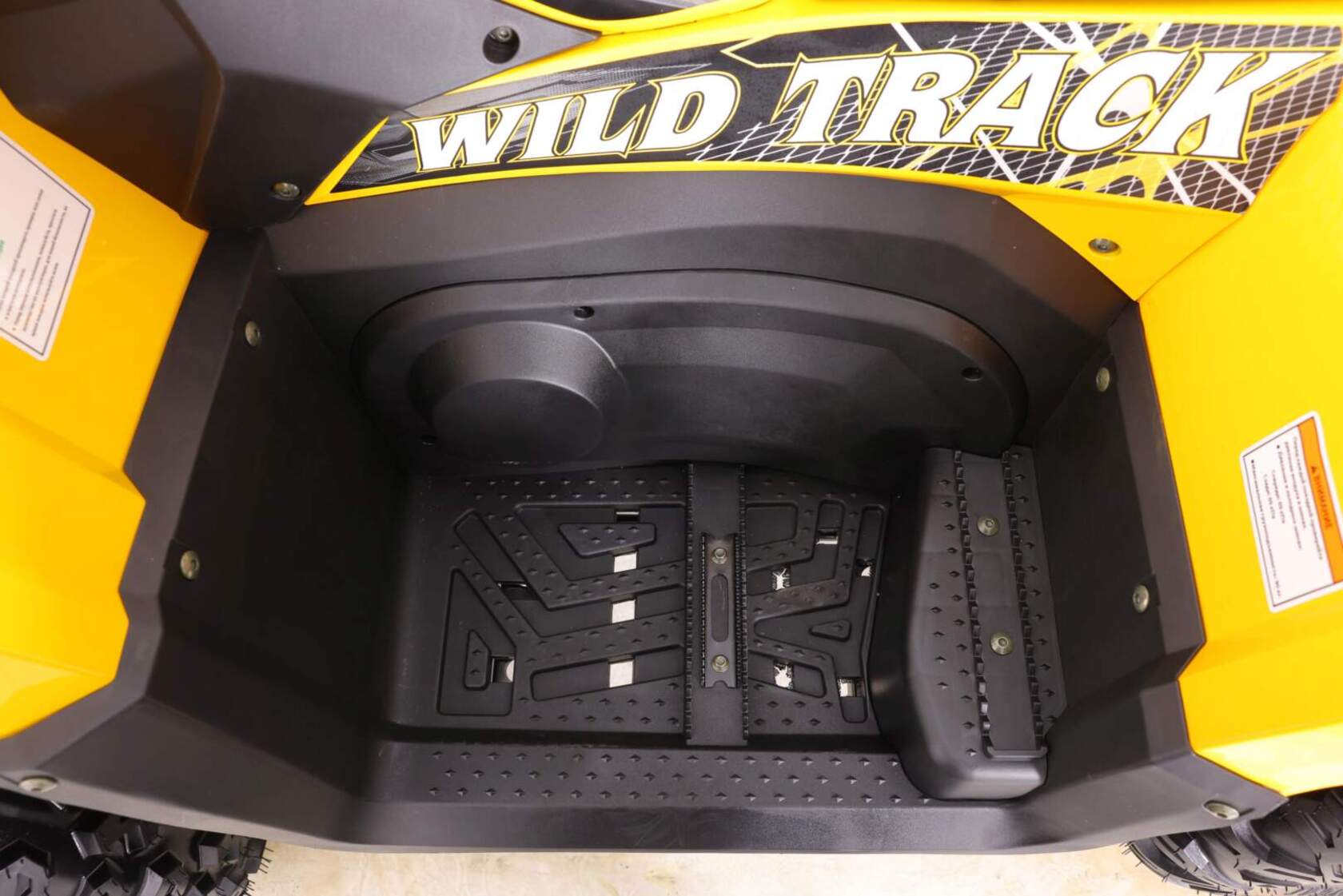 Wild Track Lux – сочетает в себе удобство ,простоту обслуживания и хорошую проходимость в самых разных условиях использования . Благодаря отлично настроенной подвеске управление и передвижение на нем становится очень комфортным. Все неровности и кочки, будут проглатываться без проблем, ведь на нем установлены колеса на 10 дюймов .Квадроцикл оснащен 161 QMK на 200 см3 двигателем c воздушно-маслянным охлаждением и автоматической коробкой передач с реверсом , дисковыми тормозами, панелью приборов , линзованной оптикой с диодными ДХО и люстрой , литыми дисками, ручным стартером . Он отлично подойдет для семейных покатушек ,а также для рыбалки и охоты .Вы получите незабываемые впечатления от вождения .