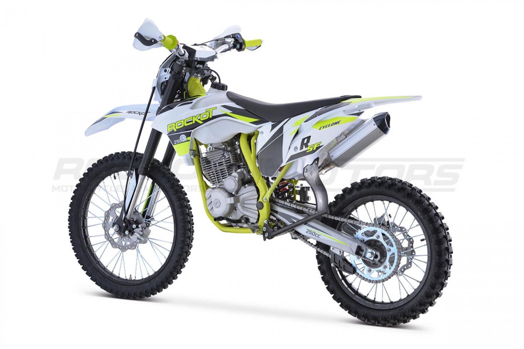 Новинка 2021 года, . Обладают энергоемкой подвеской, передняя вилка имеет возможность регулировки, по скорости сжатия и отбоя. Задний амортизатор с прогрессией, а также с возможностью регулировки. Данный мотоцикл подойдет как новичкам, так и тем кто захотел пересесть с питбайка на более кубатурную технику. Двигатель воздушного охлаждения в паре с карбюратором NIBBI PE 30 выдает 21 л. с., которые позволяют с легкостью брать любые подъемы, преодолевать броды, а так же перескакивать препятствия. На мотоцикле ROCKOT Вы сможете познать и почувствовать прекрасный мир эндуро.