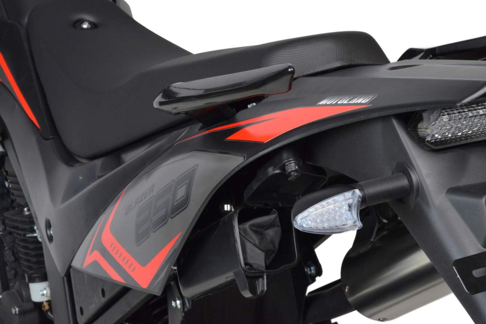 Motoland BLAZER 250 - отличный эндуро-мотоцикл по доступной цене. Двигатель 169FMM, мощностью 16 л.с., усиленную «перевернутую» переднюю вилку, защиту двигателя и рук, LCD-панель, светодиодные поворотники и стоп-сигнал и кроссовую фару.Переднее колесо 2.75-21, заднее колесо 4.0-18.мотоцикл двойного назначения – для асфальта и легкого бездорожья.Наличие ПТС дает возможность легально передвигаться по городским улицам и дорогам общего пользования, внедорожные качества позволяет без особых усилий преодолевать бездорожье. Как видите, за довольно символическую цену вы получаете полноценный эндуро мотоцикл. После небольшой доработки мотоцикла, его свободно можно использовать для эндуро рейдов.Blazer 250 отлично подойдет как опытным любителям эндуро, так и начинающим.Мотоцикл маневренный и потрясающе удобный в городе, из за своей узкой и высокой формы, способный пролезть даже в минимальные зазоры между стоящими в пробке автомобилями. , внедорожные качества позволяет без усилий преодолевать грязь и трудопроходивые места .Мягкое сидение для 2-х пассажиров и подножки пассажира для удобных совместных поездок.Тихий городской глушитель, который не доставит вам дискомфорта.Скромный расход топлива, который почти не зависит от того, с какой скоростью едет мотоцикл и на каких оборотах работает двигатель, в среднем это 3,2-3,5 л на 100 км.Мотоцикл прост в управлении и неприхотлив в обслуживании. Подходит мотолюбителям Эндуро любого возраста и опыта вождения, которым нужна техника для поездок из точки А в точку Б и обратно по дорогам и легкому бездорожью.