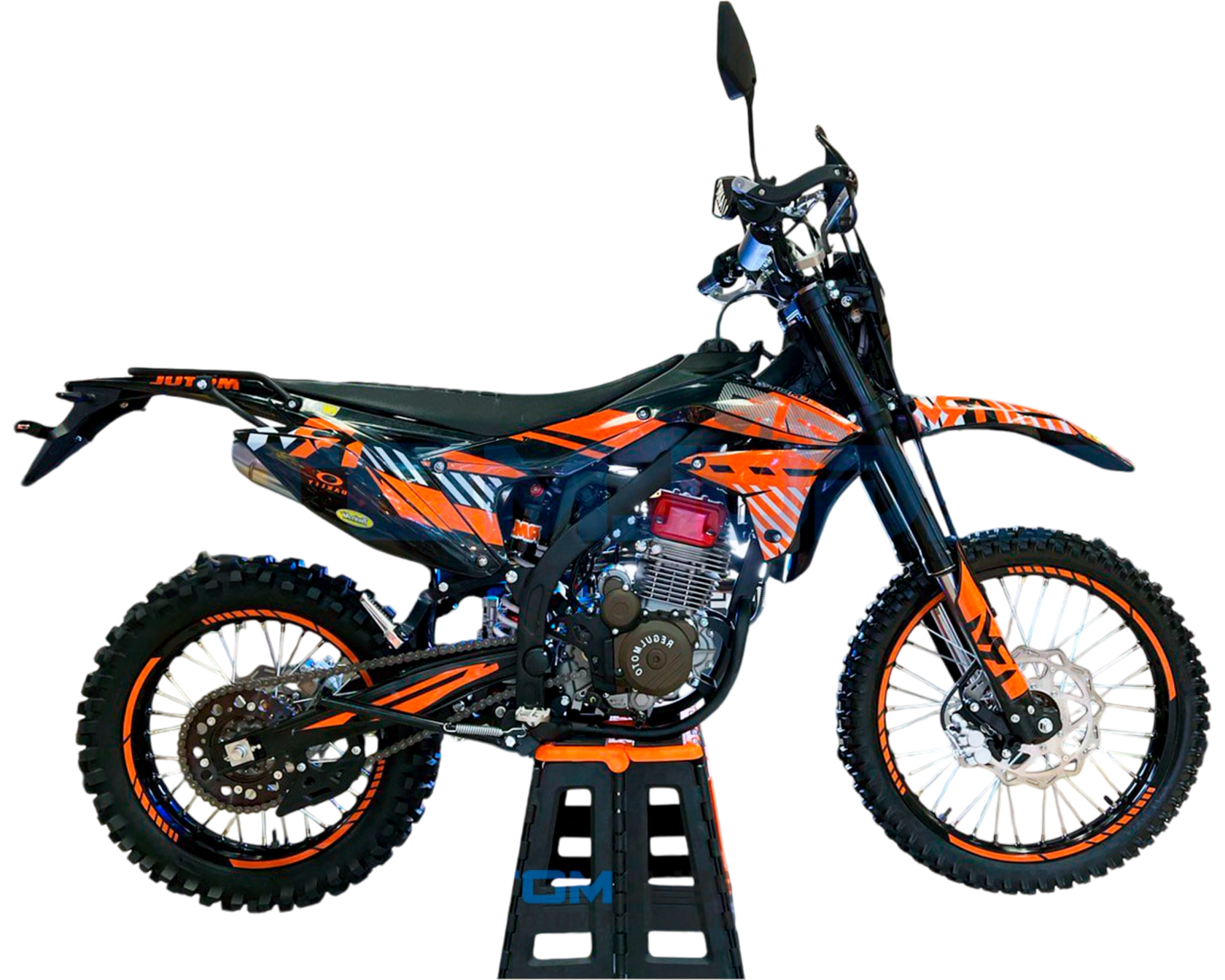 Стильный и доступный байк многоцелевого назначения найдет применение в качестве надежного аппарата для покорения бездорожья, а также может использоваться для решения широкого круга утилитарных задач и передвижения по дорогам общего пользования.В основе конструкции Regulmoto ZR 250 – мощная стальная рама, поставленная на колеса 21/18, которые наилучшим образом подготовлены к офф-роаду. Ободья и ступицы колес изготовлены из алюминия, также установлены усиленные спицы и буксаторы, надежно фиксирующие покрышки на ободе. Подвеску эндуро-байка представляют длинноходная телескопическая вилка-«перевертыш» спереди и стальной маятник с прогрессией и моноамортизатор с компенсационным резервуаром сзади. Работу амортизаторов при необходимости можно настроить при помощи регулировки сжатия/отбоя.Силовая установка мотоцикла представлена одноцилиндровым 4-тактным двигателем Zongshen ZS172FMM-5 (PR250) с воздушным охлаждением рабочим объемом в 249,9 см3 с балансировочным валом; за подготовку топливной смеси отвечает карбюратор Nibbi PE30. Технический потенциал надежного и производительного двигателя позволяет демонстрировать 21 лошадиную силу максимальной мощности и 18 Hm максимального крутящего момента.Regulmoto ZR 250 PR также привлекает внимание отличными внешними данными: мотоцикл комплектуется крепким и гибким пластиком с ярким дизайном, выполненным в узнаваемой стилистике популярной модели известного производителя.