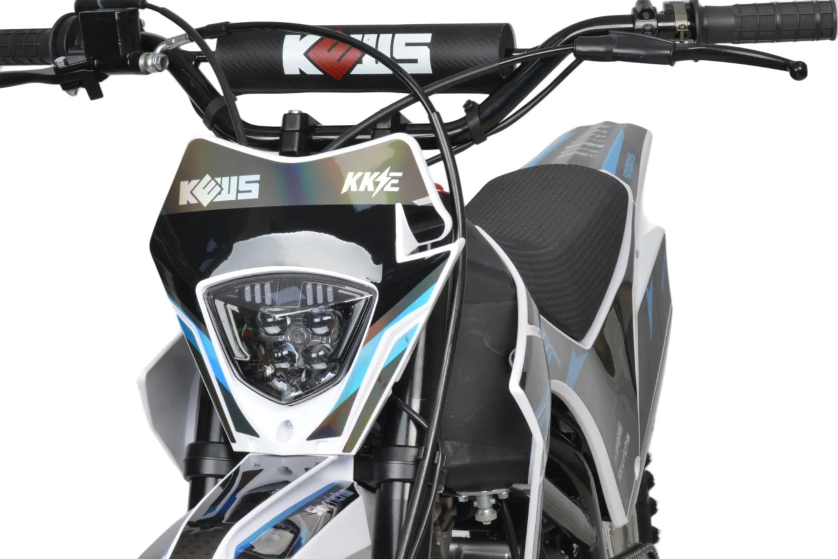 Питбайк KEWS K61 125 E 17/14 идеален для поездок по грунтовым дорогам и бездорожью. Хорошо чувствует себя на мягком и среднем грунте, разгоняется до 90 км/ч.Питбайк прост в управлении и не требует специального ухода, подойдёт как новичкам, так и любителям мотокросса.Конструкция подчёркивает неуступчивый спортивный характер, который не остановится ни перед одним препятствием.Передняя подвеска — телескопическая вилка, которая отлично подходит для преодоления ям, и других неровностей плохих дорог или их отсутствия. Задняя подвеска маятниковая с моноамортизатором.Питбайк оснащён карбюратором NIBBI PE19 и одноцилиндровым четырёхтактным двигателем 154 FMI с воздушным охлаждением, мощностью 11 л. с. и объемом 125 см³. Коробка передач механическая, четырёхступенчатая.Тормоза дисковые, передний тормозной суппорт двухпоршневой, задний — однопоршневой.Питбайк относится к недорогим моделям, которые при должной эксплуатации работают без сбоев. Не занимает много места.