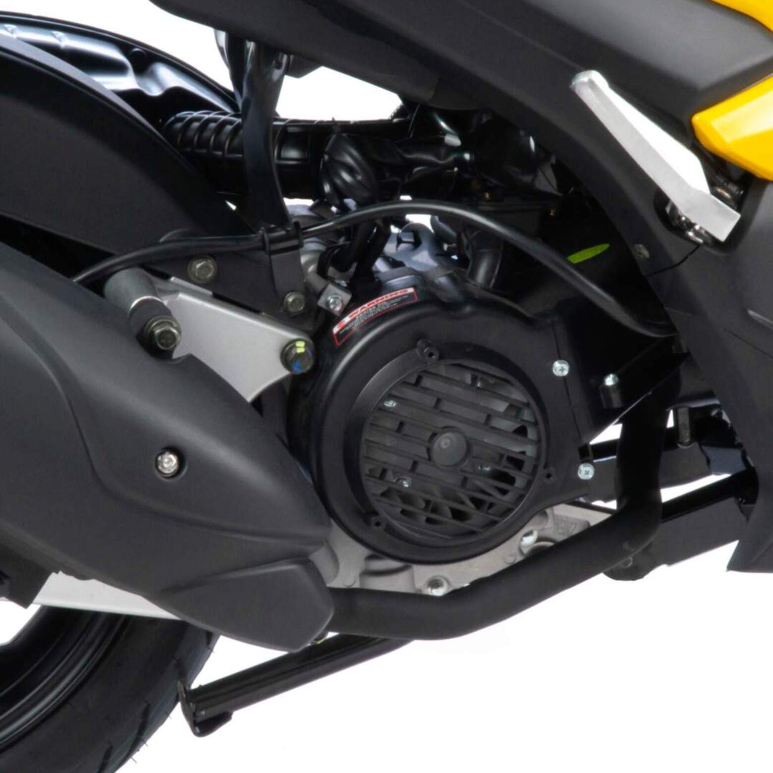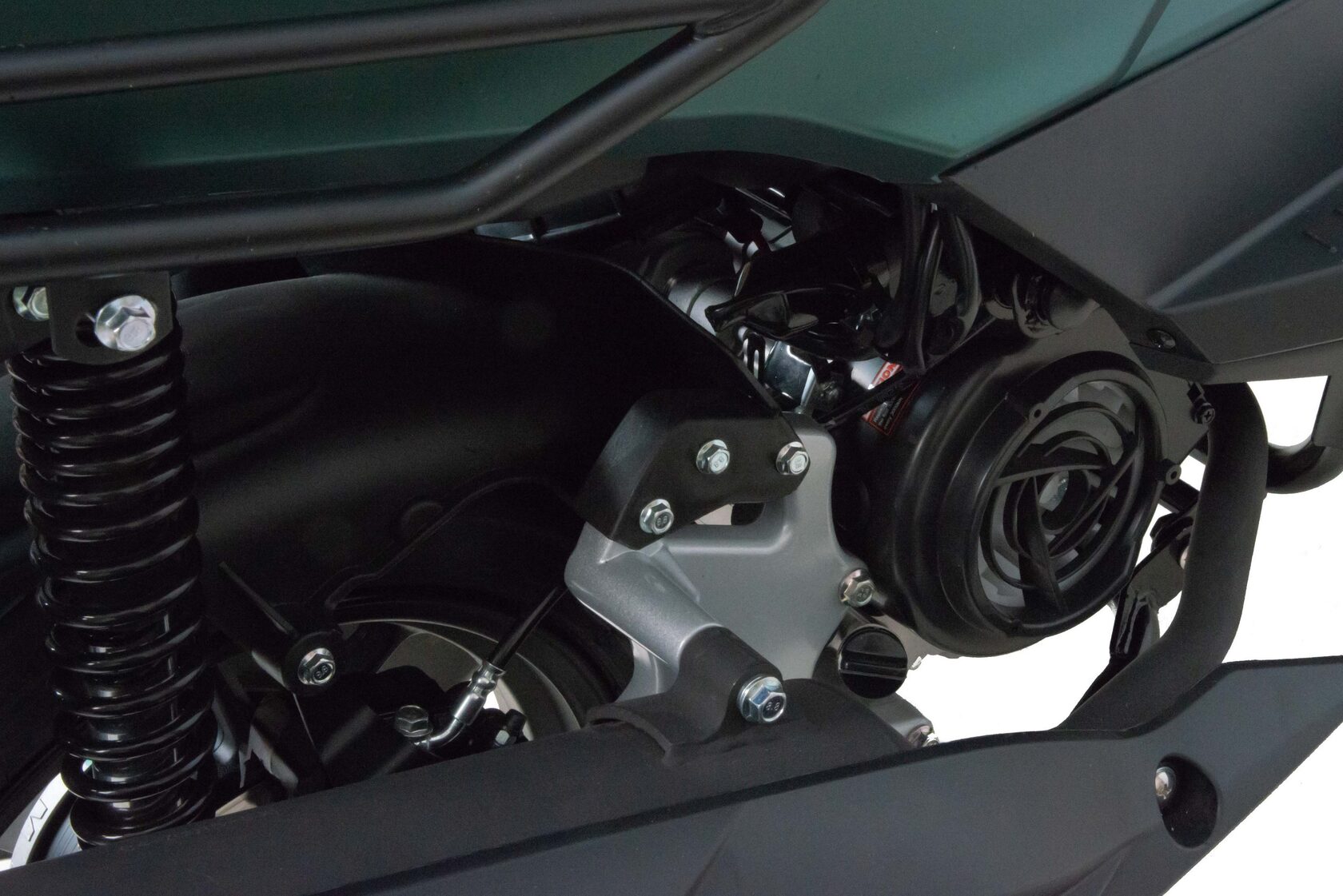 Скутер Motoland Tank - отличный вариант для загородных поездок и рыбалки: имеет множество дополнительных защит и закрытий, колеса 12" с резиной для поездки по грунтовой дороге и асфальту.Брутальный внешний вид и черный цвет делает его не похожим на другие скутера. Дополнительные ДХО, светодиодные поворотники и стоп-сигнал.На скутере установлен одноцилиндровый четырехтактный двигатель 157 QMJ мощностью 10 л/с и рабочим объемом 150 см3 с принудительным охлаждением, что позволяет ему не перегреваться даже в сильную жару. Система запуска кикстартер + электростартер. Трансмиссия - вариатор, не требующий манипуляциях с переключением скоростей. Это очень удобно при эксплуатации и не вызывает сложностей, просто сел, повернул ручку газа и поехал. Все тормоза - дисковые гидравлические.Подвеска - передняя вилка телескопическая и два задних амортизатора. Колесные диски литые алюминевые, на которые установлены качественные покрышки 120/70-12".Выдерживает нагрузку до 150 кг, что позволяет перевозить одного пассажира. Под сиденьем есть большое багажное отделение + площадка для крепления дополнительного кофра. Приборная панель — электронная, с очень крупными, легко читаемыми цифрами и часами; со всеми необходимыми указателями.Габариты: 1900 х 710 х 1170 мм. (без учета зеркал)