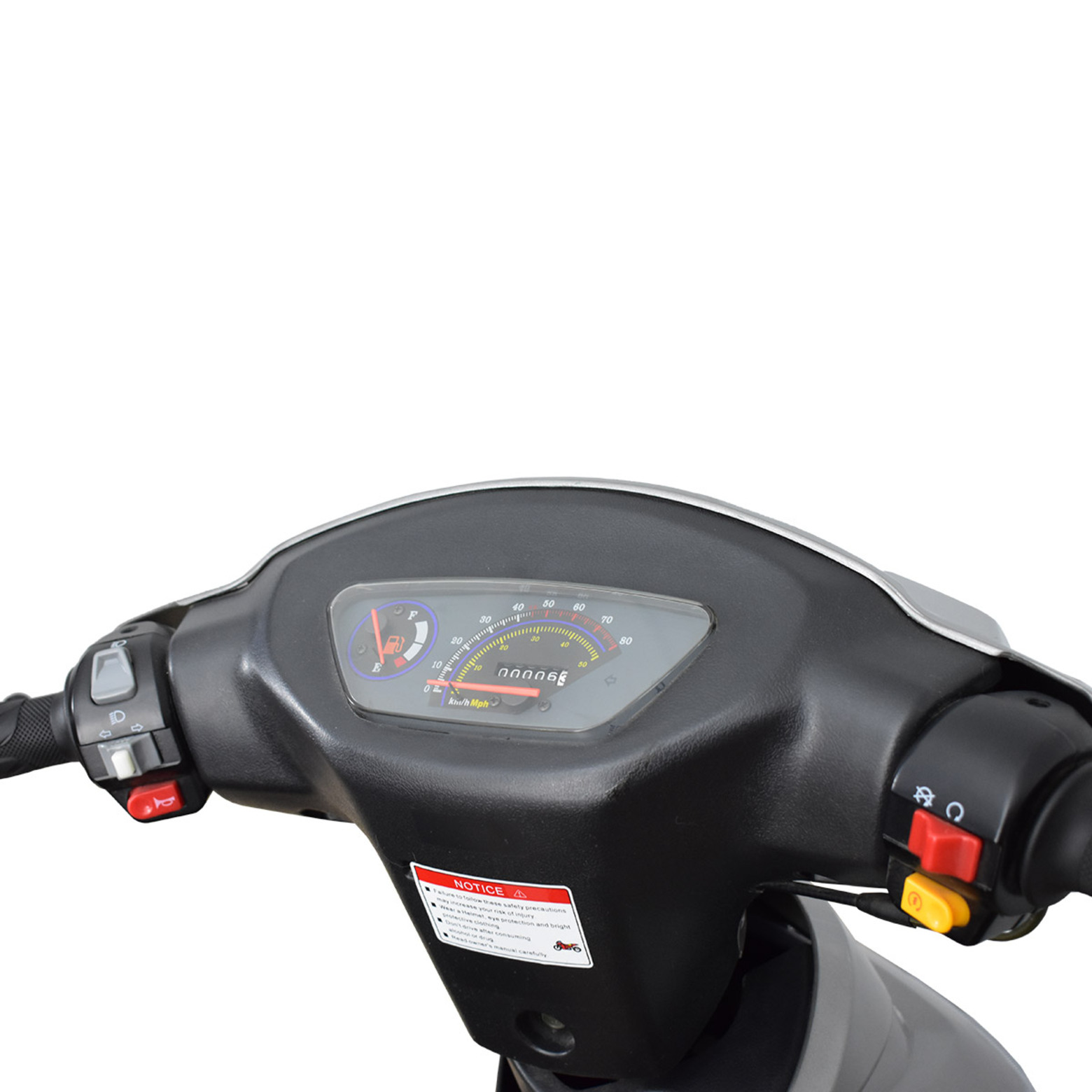 Питбайкмаркет представляет вниманию поклонников практичной и доступной мототехники мопед Regulmoto Digita 50 (LJ50QT-3L) . Эта популярная модель 50-кубового скутера успешно продается в Европе, в частности мопед пользуется стабильным спросом среди покупателей Англии благодаря привлекательной цене и оптимальной комплектации.Мопед Regulmoto Digita 50, представляемый нашей компанией в России, также широко известен экспертам мотоиндустрии под именем Longjia LJ 50 QT-3L. Мини-скутер можно рекомендовать для всех, кто делает самые первые шаги в получении навыков управления двухколесной мототехникой или имеет небольшой опыт. Невысокая стоимость мопеда может быть одним из главных привлекательных моментов, но не стоит забывать и о других достоинствах этой мототехники.Еще одно неоспоримое преимущество – очень простой и надежный, как скала, 4-тактный двигатель объемом в 49см3. Мотор с воздушным охлаждением не отличается высокой мощностью, однако очень экономичен, нетребователен к обслуживанию и обладает достаточной производительностью. Скутер Regulmoto Digita 50 оснащается электростартером, так что двигатель можно запускать как при помощи удобной кнопки, так и традиционным кик-стартером. За безопасность эксплуатации отвечают дисковый тормоз на переднем колесе и традиционный «барабан» в ступице заднего колеса. Комфорт повседневного использования мопеда Regulmoto Digita 50 обеспечивают автоматическая трансмиссия, активная подвеска, приборная панель, стояночная и центральная подножки, удобное сиденье (максимальная возможная нагрузка составляет 120 кг), а также полный комплект светового оборудования и установленные на руле зеркала заднего вида. Небольшой багажник сзади предоставляет возможность установки кофра для перевозки или хранения мотошлема.В случае самовывоза оплата товаров производится в кассе магазина. Если товар доставляется курьером, то оплата осуществляется наличными курьеру в руки. При получении товара обязательно проверьте комплектацию товара, наличие договора купли продажи и чека.