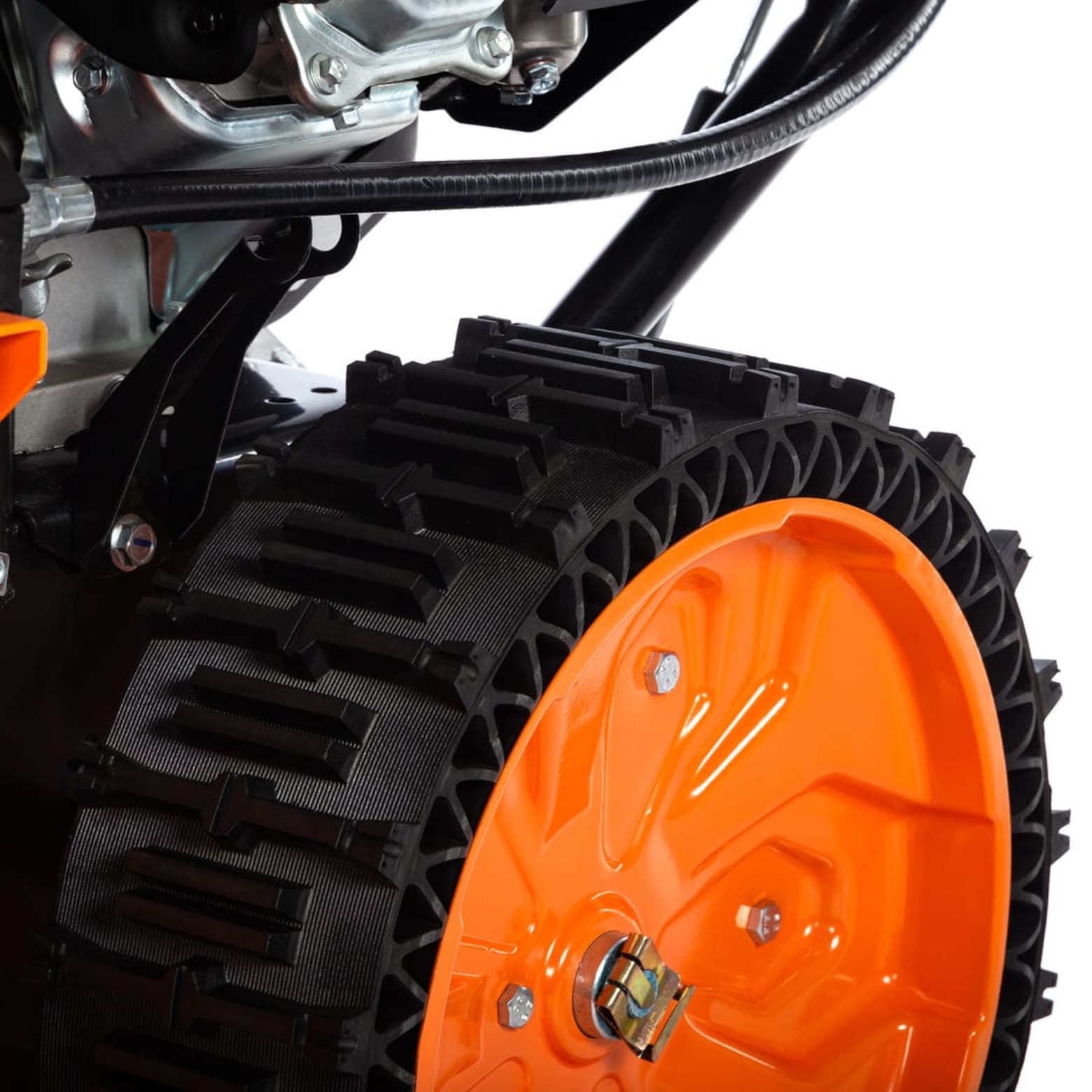 Снегоуборочная машина Kettama 90S Superior представляет собой «среднюю» модель линейки Superior. Однако также обладает всеми её основными преимуществами. Снегоуборщики линейки Superior, выпускаемые компанией Kettama, представляет собой класс полупрофессиональной техники. Основными отличиями от класса бытовой техники являются повышенные производительность и рабочая ресурсность.На Kettama 90S также установлены безвоздушные шины SnowLink с технологией Runflat. Шины Runflat с глубоким протектором исключают пробуксовку агрегата на обледенелом участке. Увеличенное сцепление даёт возможность достичь показателей производительности практически равных гусеничному шасси. При этом, более низкий общий вес снегоуборщика позволяет достигать на этой модели показателей производительности до 9 т/ч с влажным лежалым снегом плотностью до 400 кг/м3. На свежевыпавшем влажном снегу плотностью до 200-250 кг/м3 этот снегоуборщик имеет производительность до 18-20 т/ч. Шины позволяют достигать высокого сцепления и производительности даже во время поворотов.Возможность эффективно перерабатывать снег практически любого типа сложности связана с конструкторским решением сочетания высокой мощности (8,5 л.с.), небольшой ширины уборки (663 мм) и усиленным сцеплением 14-дюймовых безвоздушных шин Runflat. Небольшая ширина ковша, даёт возможность эксплуатировать эту технику на любом приусадебном участке с узкими дорожками. Повышенная высота уборки (540 мм) по сравнению с моделью 80S (510 мм) позволяет применять эту технику при работе с более высоким снегом. Однако это же создаёт определенные ограничения в работе с лежалым снегом с элементами сухого фирна. Рекомендуемый тип снега для 90S для эффективной уборки не должен превышать плотность 400 кг/м3. Дефлектор из усиленного металла позволяет менять направление выброса снега на 190 градусов при помощи рукоятки на корпусе машины. Стальной агрессивный шнек с добавлением хромомолибденового сплава позволяет эффективно справляться даже со слежавшимся снегом.Скорость уборки: 6 передач вперёд и 2 назад, что позволяет выбрать оптимальный режим работы в зависимости от сложности задачи и типа снега. Металлическая рама с добавлением холодостойкого нихрома обеспечивает долговечность конструкции и возможность работать даже при экстремально низких температурах. Снегоуборщики Kettama. Наша техника станет для вас отличным подспорьем в уборке льда. Надёжный и стабильный двигатель с длительной гарантией, обеспечиваемой опытными специалистами, всегда вас выручит в момент нужды и избавит от лишней мороки. При этом нашим инженерам удалось добиться достойного соотношения качества к цене. Это позволит облегчить жизнь Вам и Вашей семье, не получив серьёзного урона по кошельку.Снегоуборщики Kettama являются одними из самых передовых и технологичных на российском рынке. Несмотря на свой привлекательный внешний вид, дизайн предельно прост и функционален, что повышает надёжность техники, исключая случайные поломки и снижая частоту обслуживания даже при регулярном использовании. Специально разработанные шнеки-ледорубы с агрессивным строением лезвий позволяет избавляться от любого, даже замёрзшего снега, и даже льда. Благодаря им Вы просто не будете знать, что есть непреодолимые препятствия. Специально разработанная система направляющих механизмов позволяют регулиров