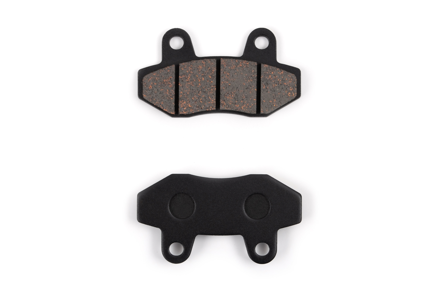 Колодки дискового тормоза для двухпоршневого суппорта с вкраплением меди для лучшего охлаждения.