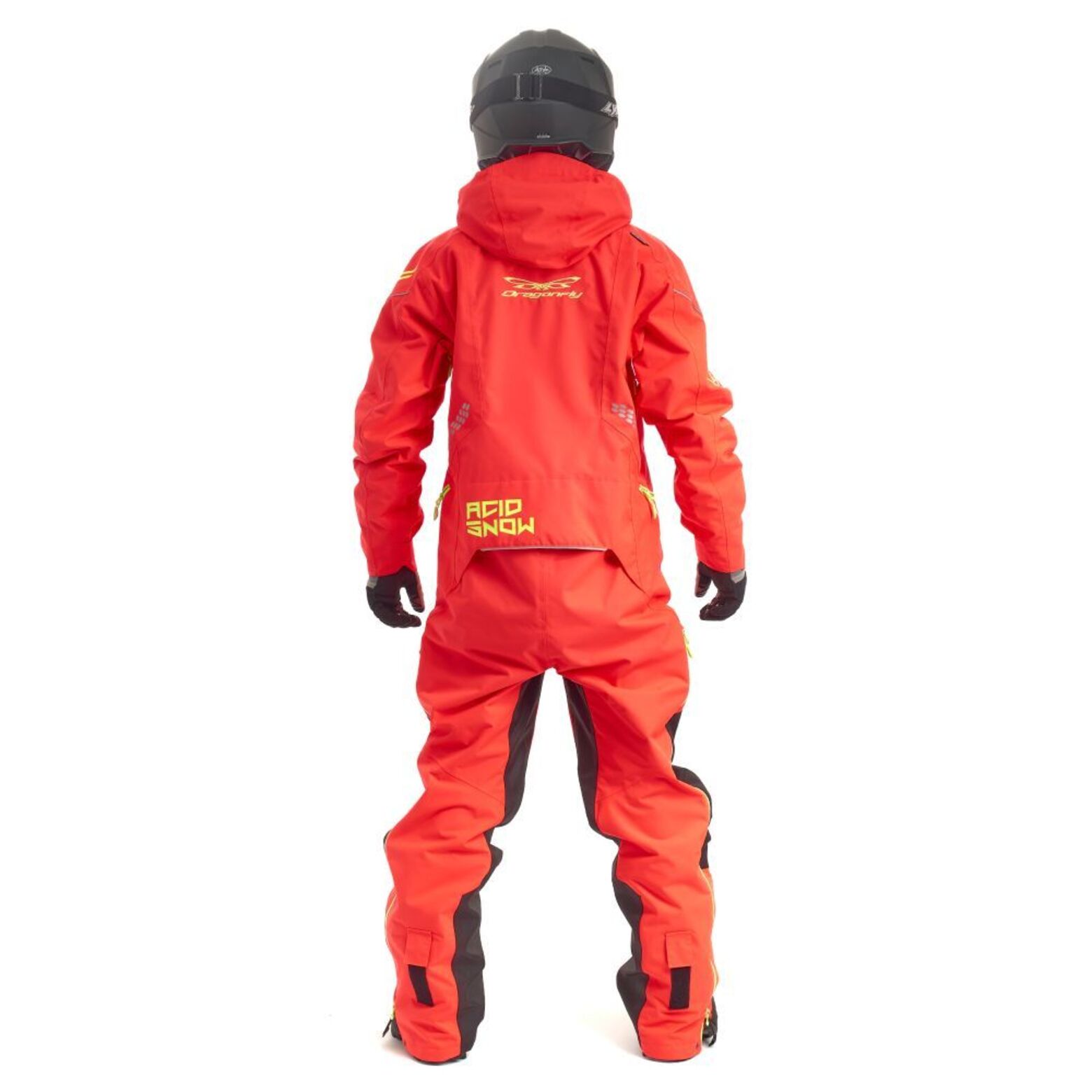 Комбинезон предназначен для снегохода и сноубайка. Надежно защитит от ледяного ветра и мокрого снега. Ткань верха дополнительно содержит тефлоновое водоотталкивающее покрытие. Внешние молнии влагозащитные. Проклеены все швы. На рукавах есть эластичные манжеты, на штанинах снегозащитные юбки с петлёй для фиксации к ботинкам. При закрытой вентиляции и карманах комбинезон герметичен.Функционал комбинезона тщательно продуман и зарекомендовал себя среди снегоходчиков и сноубайкеров. Светоотражающие элементы есть со всех сторон. Семь карманов покрывают все потребности райдера, в том числе для ски-паса, телефона, и теплые, для согревания рук. Есть удобная петля под тангенту рации и кольцо D-ring для ключа горного снегохода. Центральная молнии с тремя замками: открывается сверху и снизу. Несъемный капюшон с двойной утяжкой. Для удобства приема пищи и воды во время стоянки – есть расширения на воротнике, защищает от ветра в расстёгнутом виде. В помещении можно снять верхнюю часть комбинезона и воспользоваться регулируемыми лямками - подтяжками.